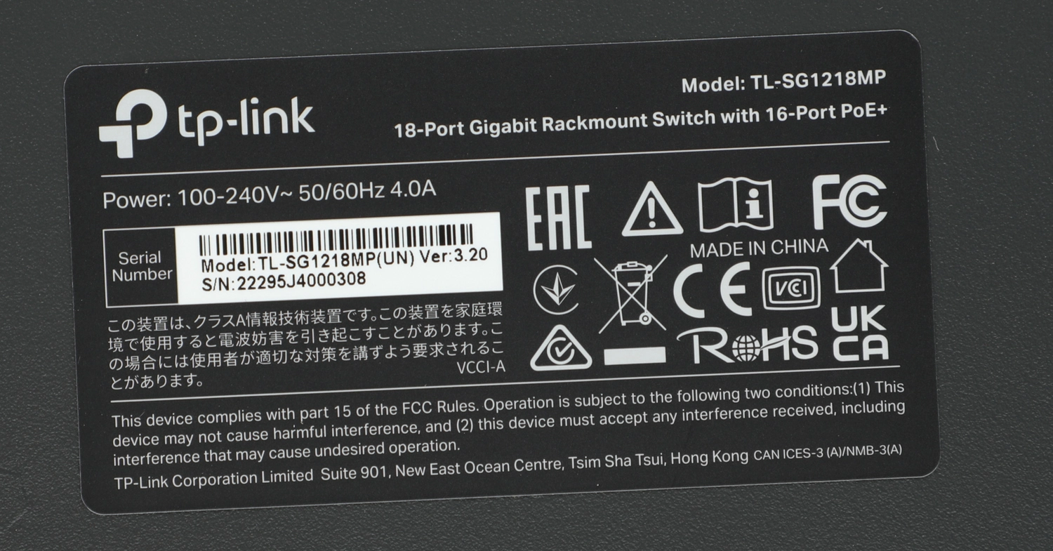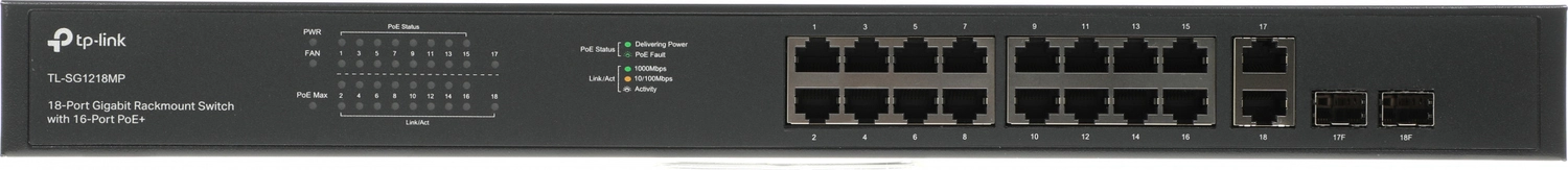Коммутатор TP-Link TL-SG1218MP (L2) 18x1Гбит/ с 2xКомбо (1000BASE-T/ SFP) 16PoE+ 250W неуправляемый