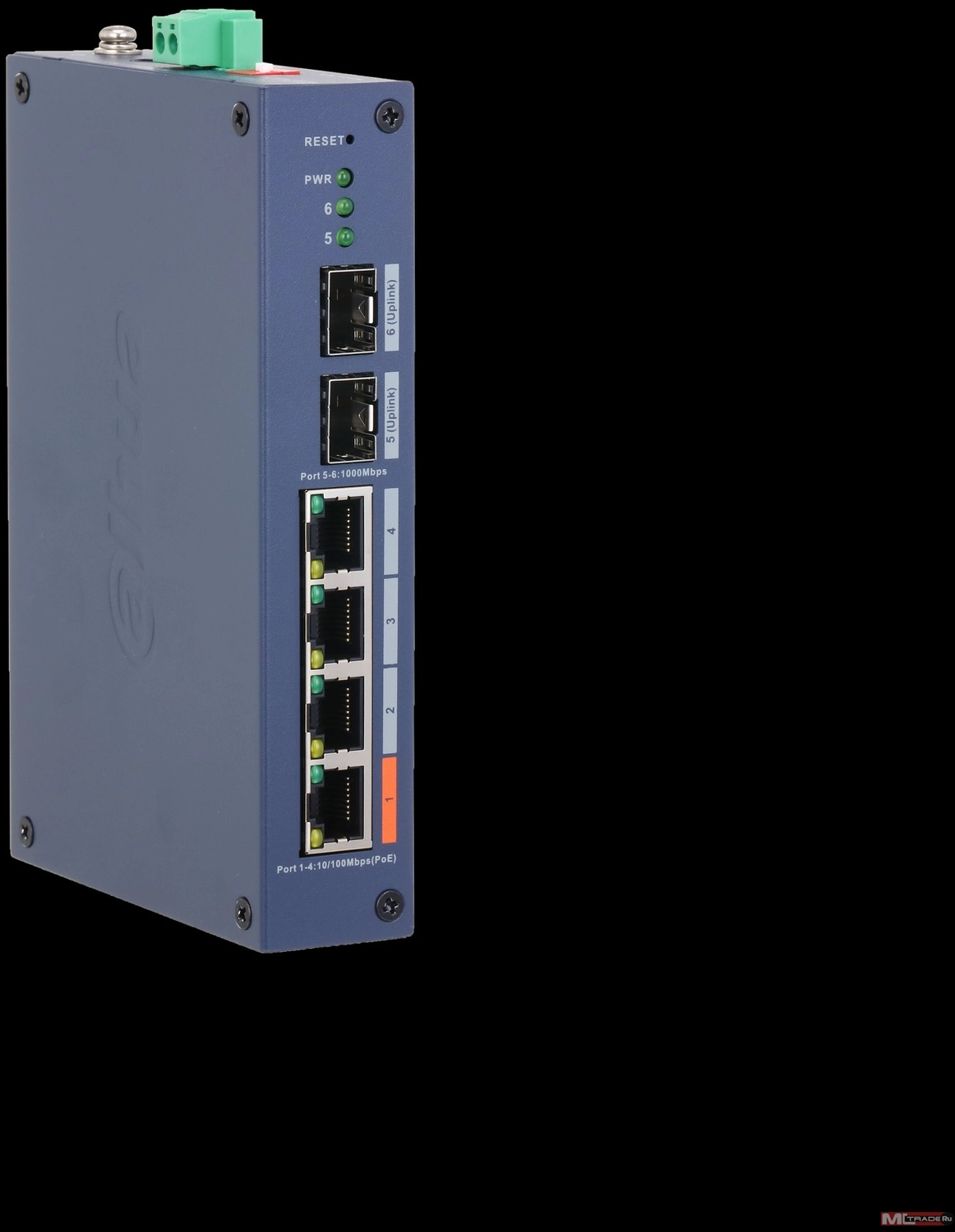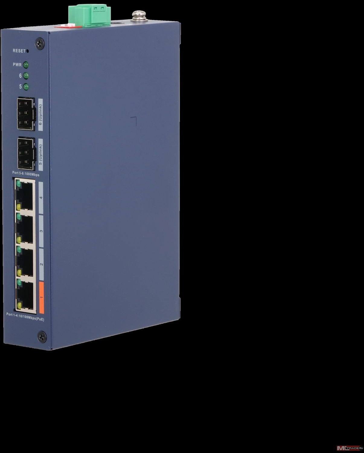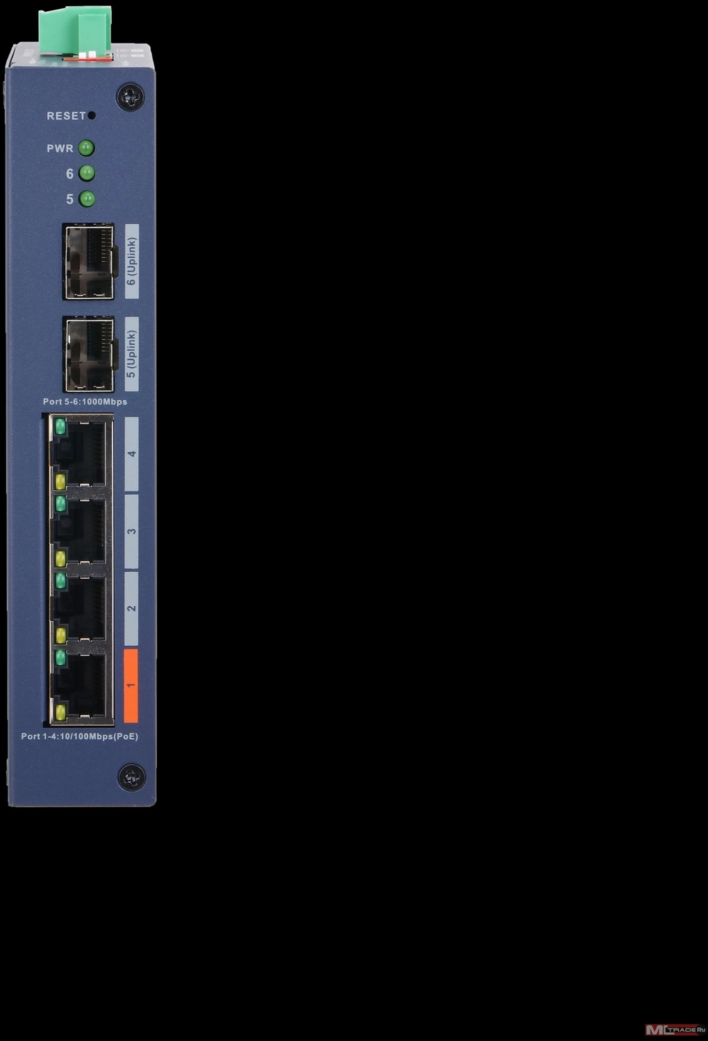 Коммутаторы DAHUA DH-CHS4206-4ET-60 4-портовый PoE коммутатор управляемый 4 RJ45 10/ 100Мбит/ с (PoE/ PoE+/ Hi-PoE) , 2 SFP 1000Мбит/ с (uplink) ; IP30, IK06; монтаж на DIN-рейку