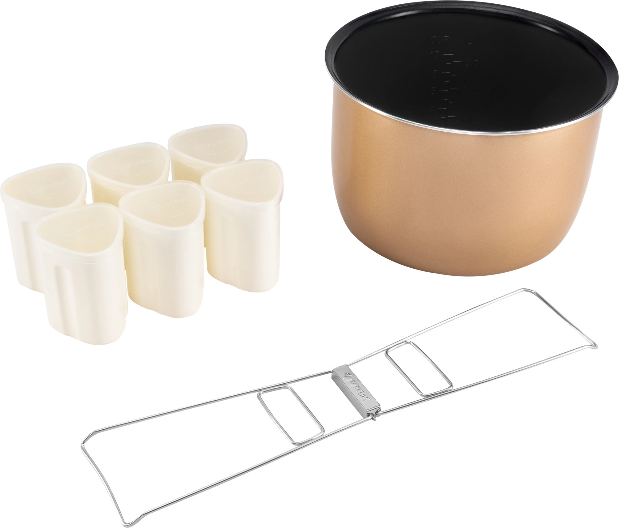Чаша с керамическим покрытием TOP CERAMIC к мультиваркам VT-4200, VT-4204, VT-4206, VT-4207, VT-4213, VT-4214, держатель для чаши, 6 стаканчиков для йогурта