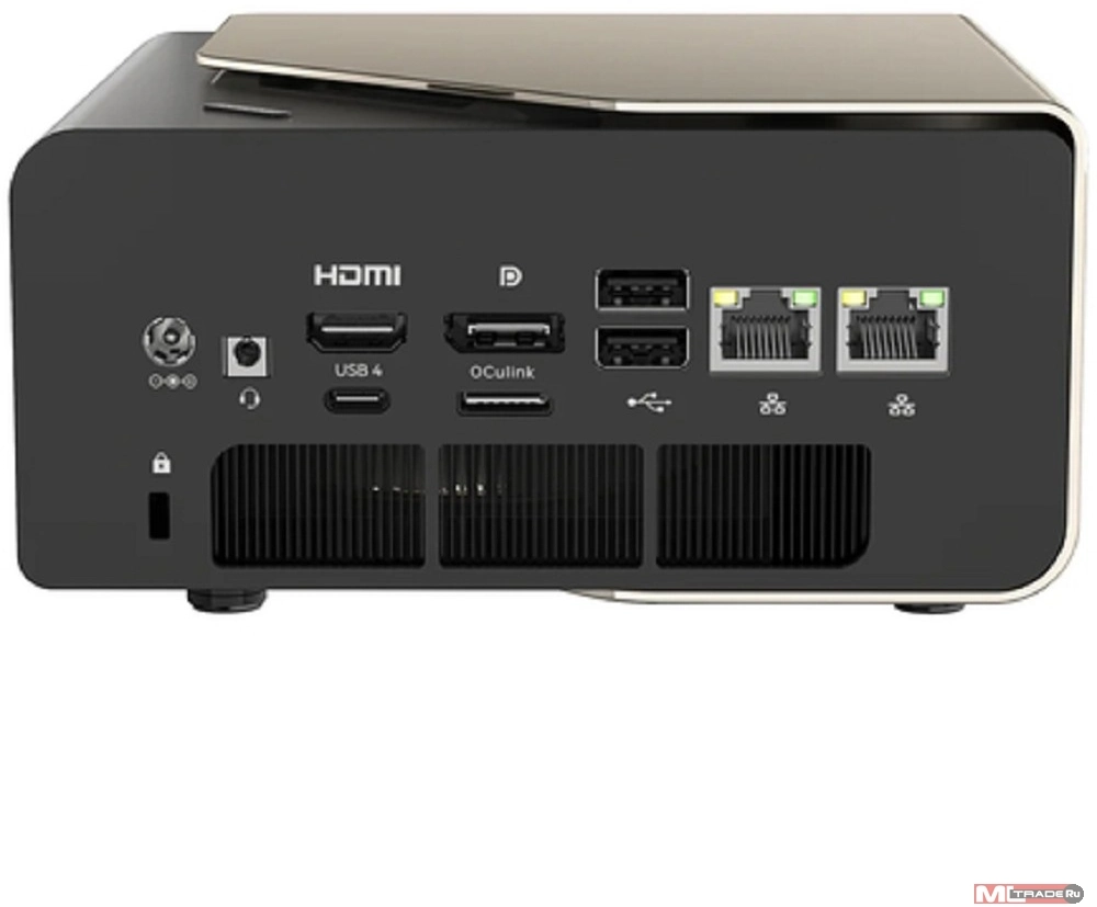 Разъемы • 1?5.5?2.5mm charging port • 1?3.5mm Combo audio jack • 1?HDMI 2.1 • 1?DP 1.4 • 1?Oculink (PCIe Gen4?4, no hot-plug) • 2?USB2.0 Type-A (stacked) • 2?2.5G LAN (Realtek 8125BG) • System fan/ LED control button (13 lighting effects)