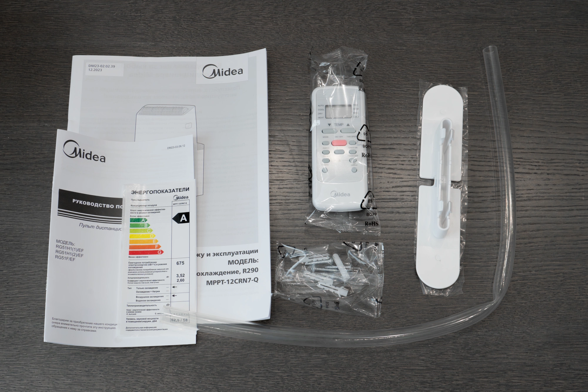 воздуховод с переходниками, дренажная трубка, пульт ДУ