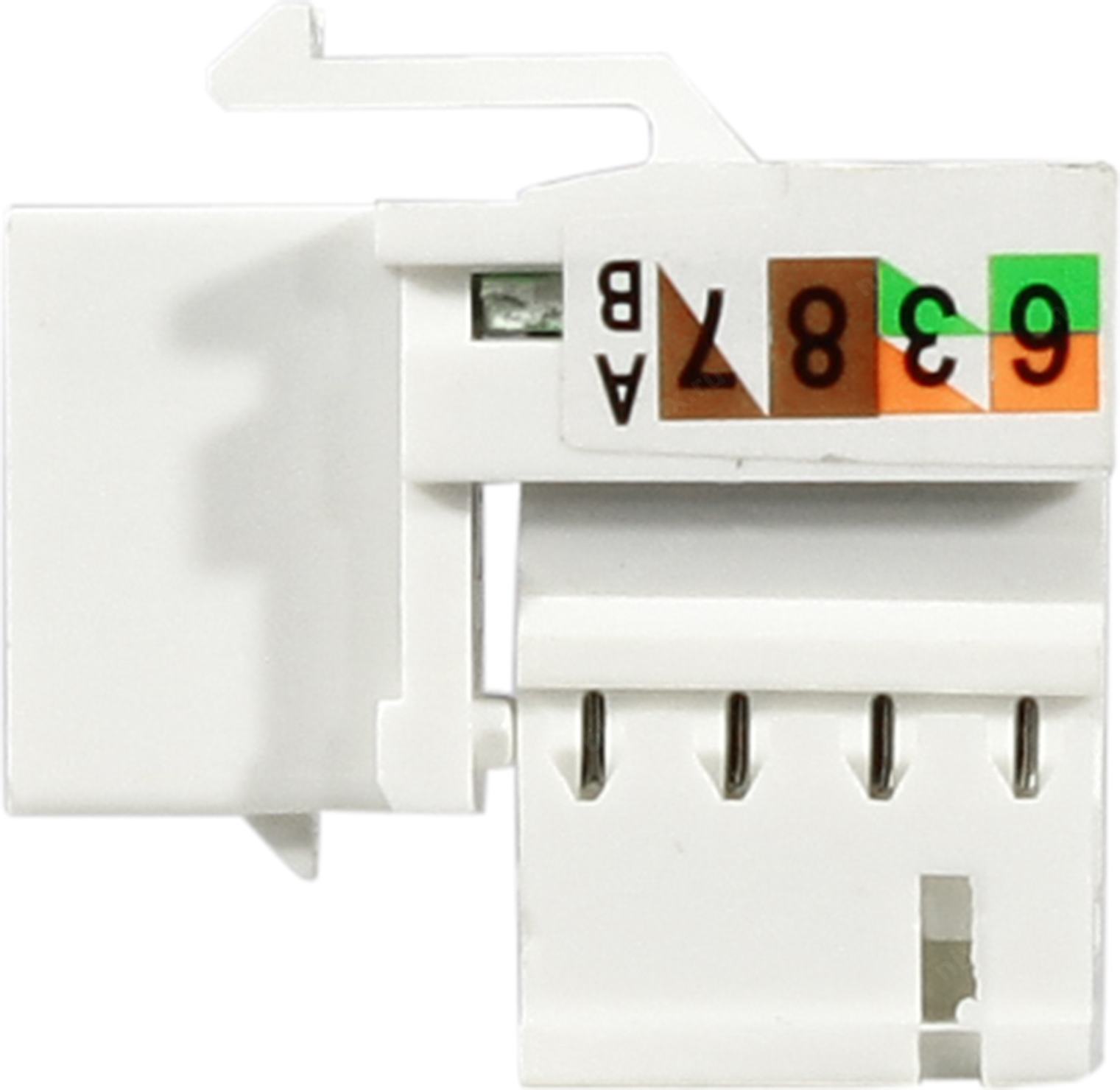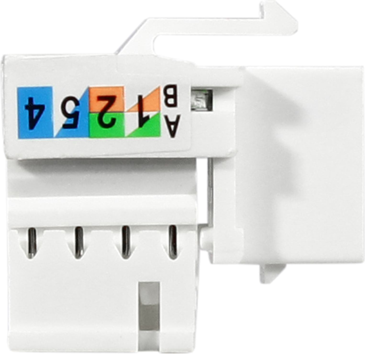 Коммутационный модуль Keystone Jack 5BITES KJU55-01W предназначен для установки в наборные патч-панели и в корпуса настенных розеток. С помощью коммутационных модулей организуется подключение коммуникационного оборудования и рабочих станций к телекоммуникационной сети. В комплекте идет сам модуль и два наклеммника для заделки проводников без использования дополнительного инструмента.