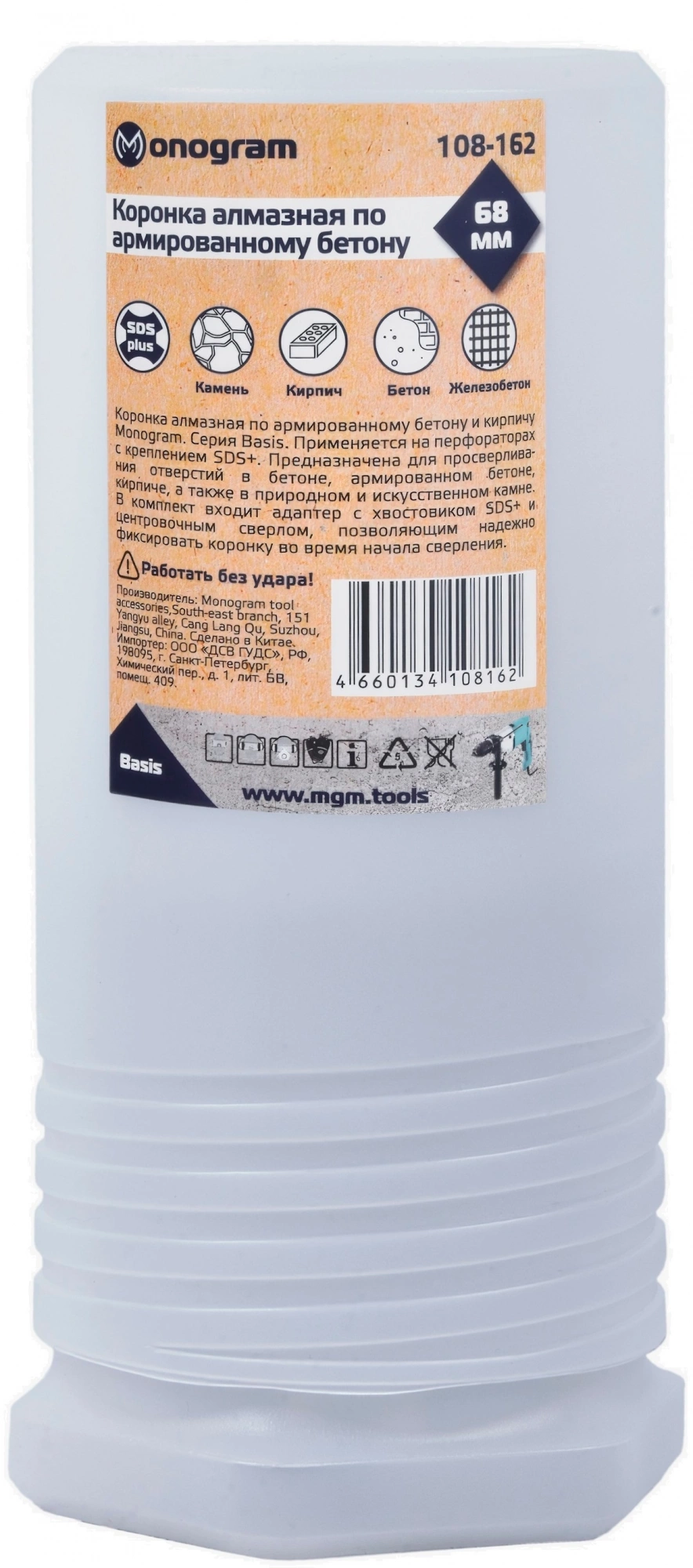 Коронка Monogram 108-162 по бет/ кирп/ камн Дл=55мм (1пред.) для дрелей/ перфораторов