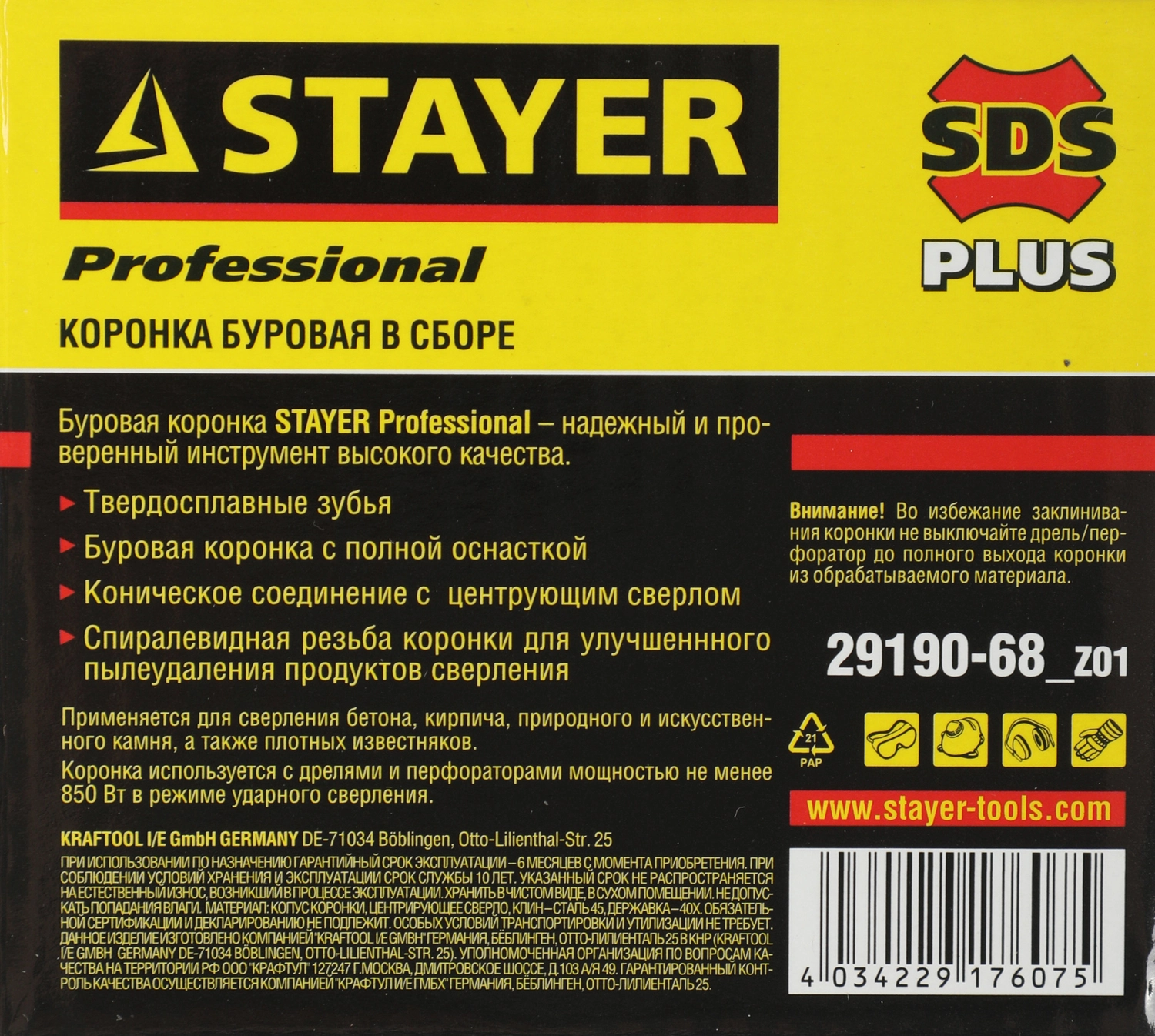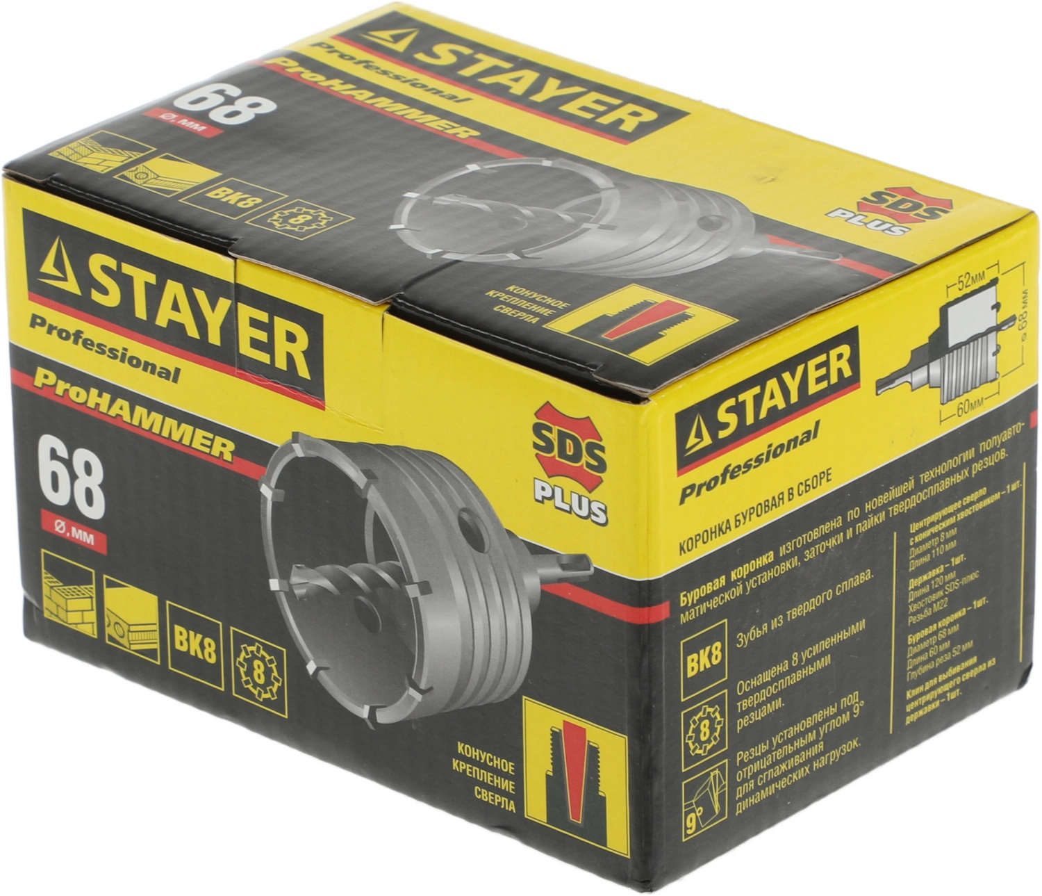 Коронка Stayer 29190-68_z01 по бетону для дрелей/ перфораторов