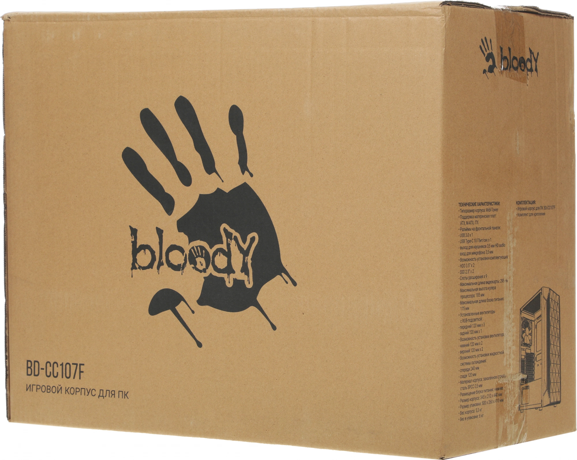 Корпус Bloody BD-CC107F черный без БП ATX 4x120mm 1xUSB3.0 audio bott PSU BD-CC107F-BK