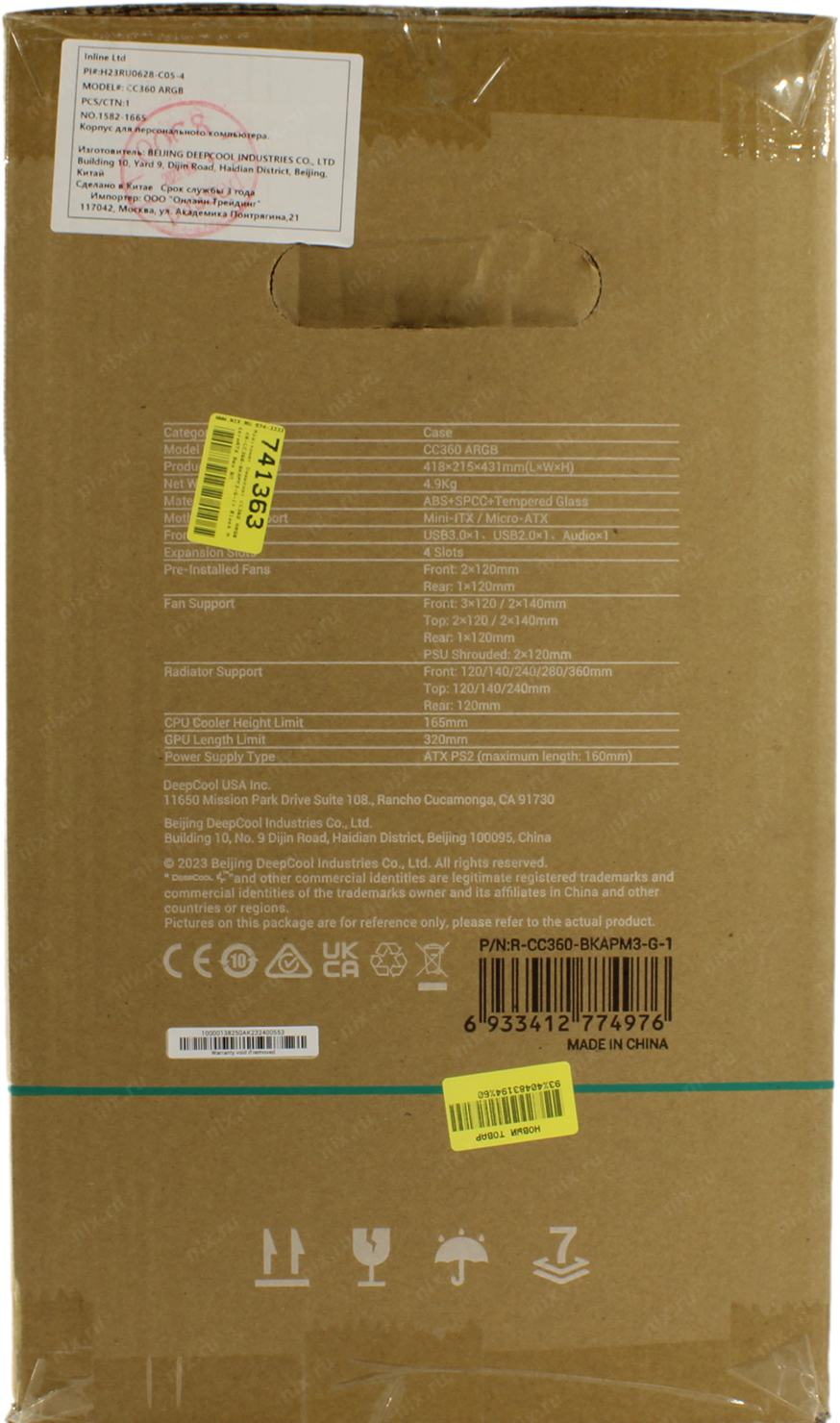 Корпус Deepcool CC360 ARGB черный без БП mATX 5x120mm 4x140mm 1xUSB2.0 1xUSB3.0 audio bott PSU R-CC360-BKAPM3-G-1