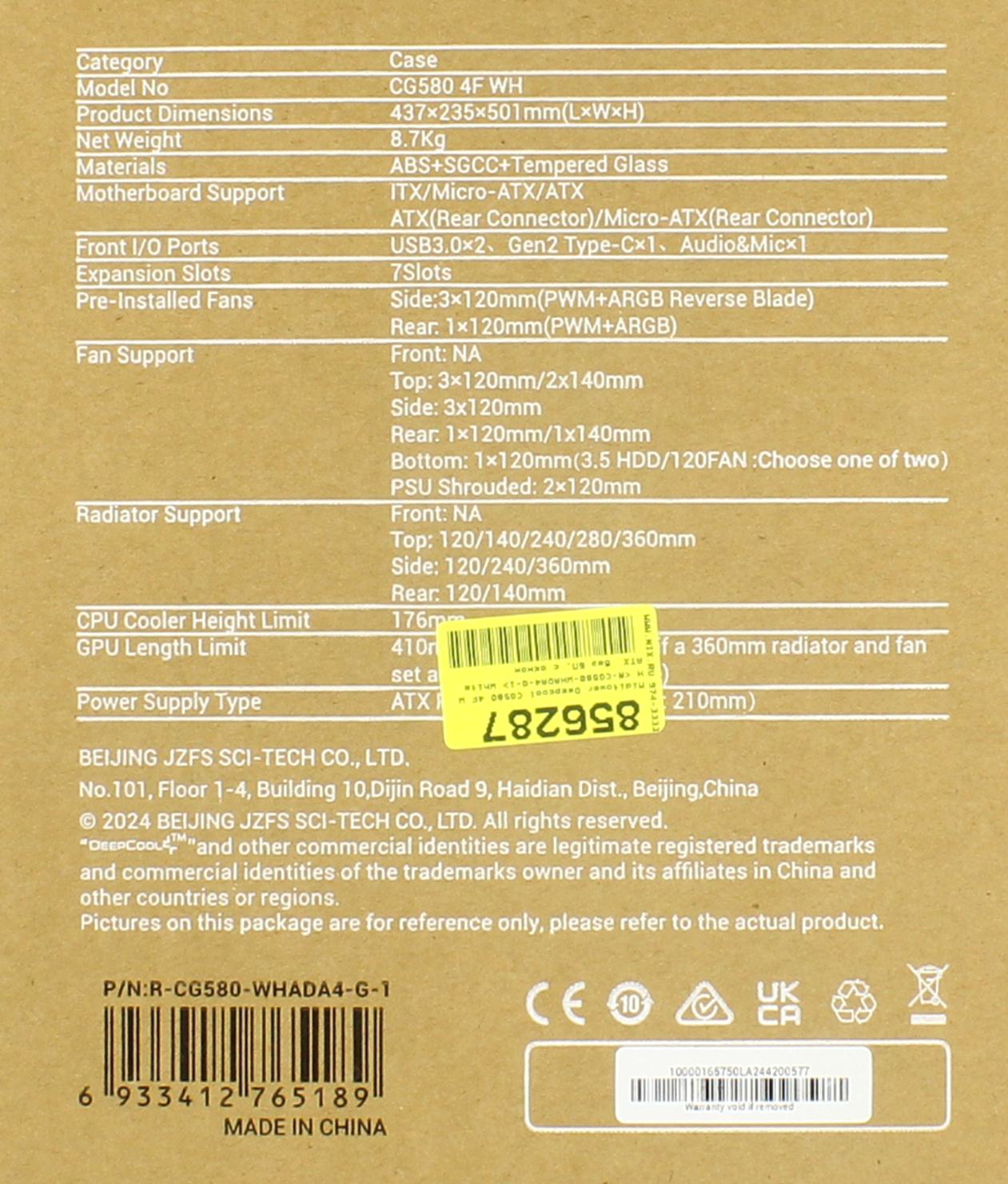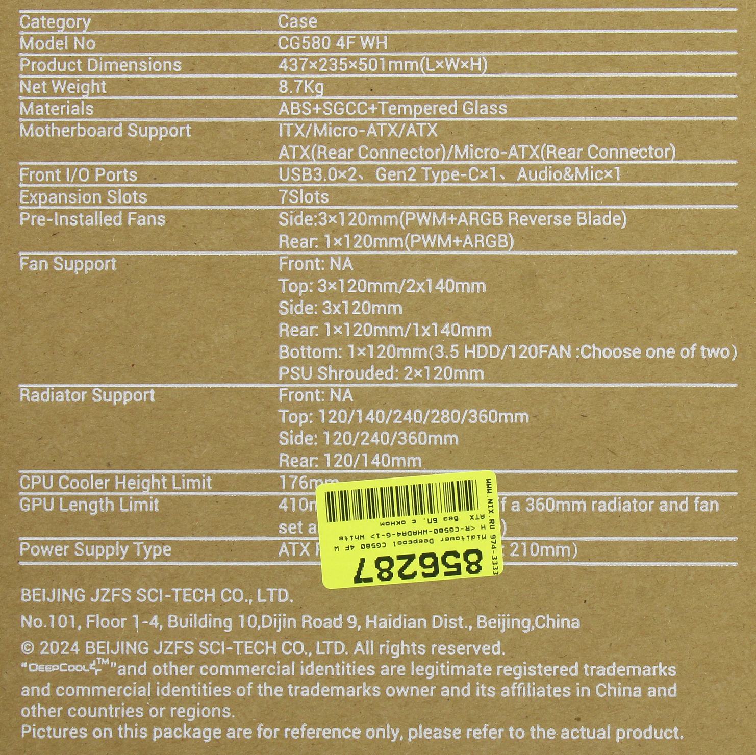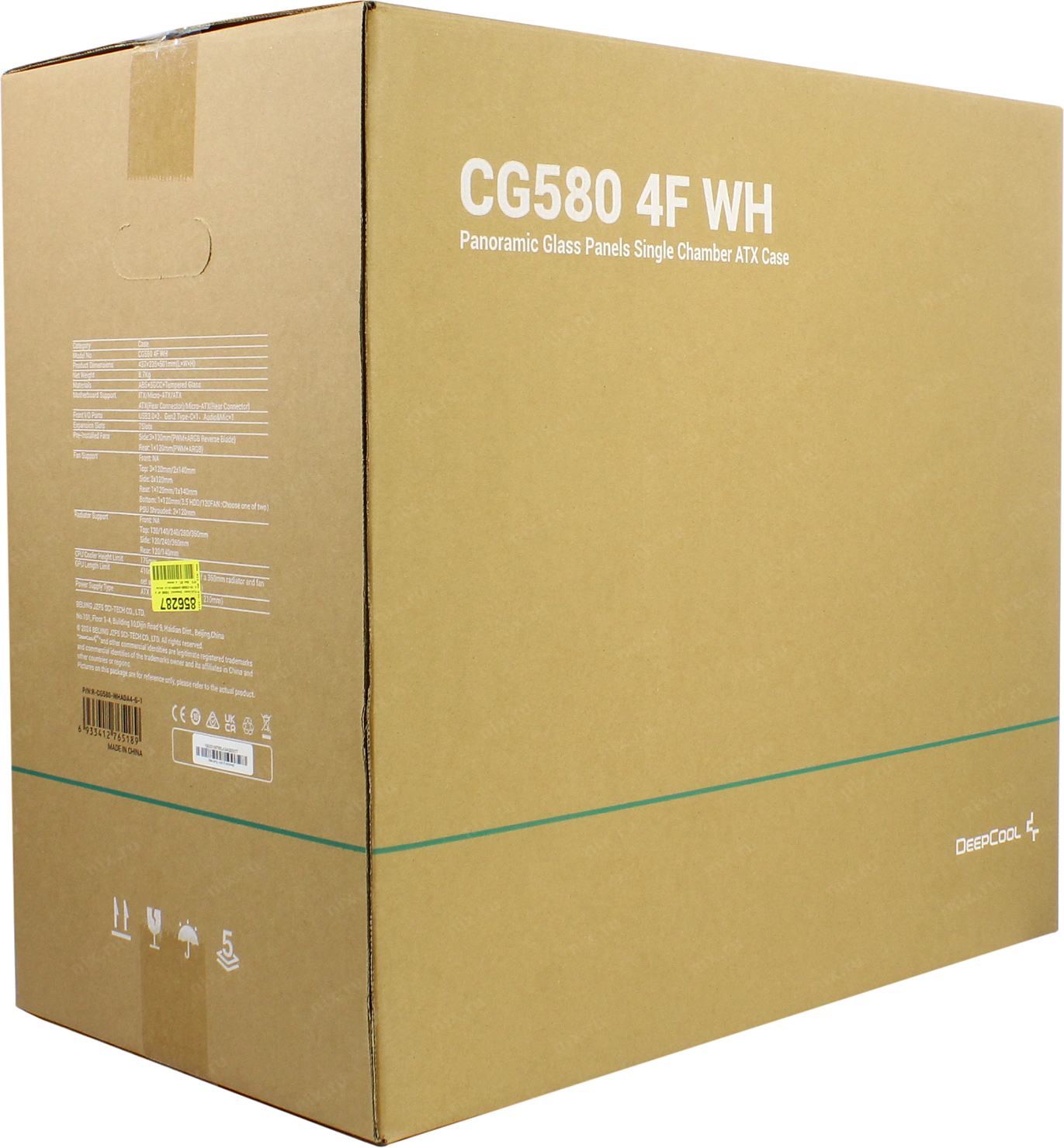 Корпус Deepcool CG580 4F White (ATX, без БП, 2*USB3.0 Type-A+USB3.2 Type-C) (R-CG580-WHADA4-G-1) | НИКС Екатеринбург