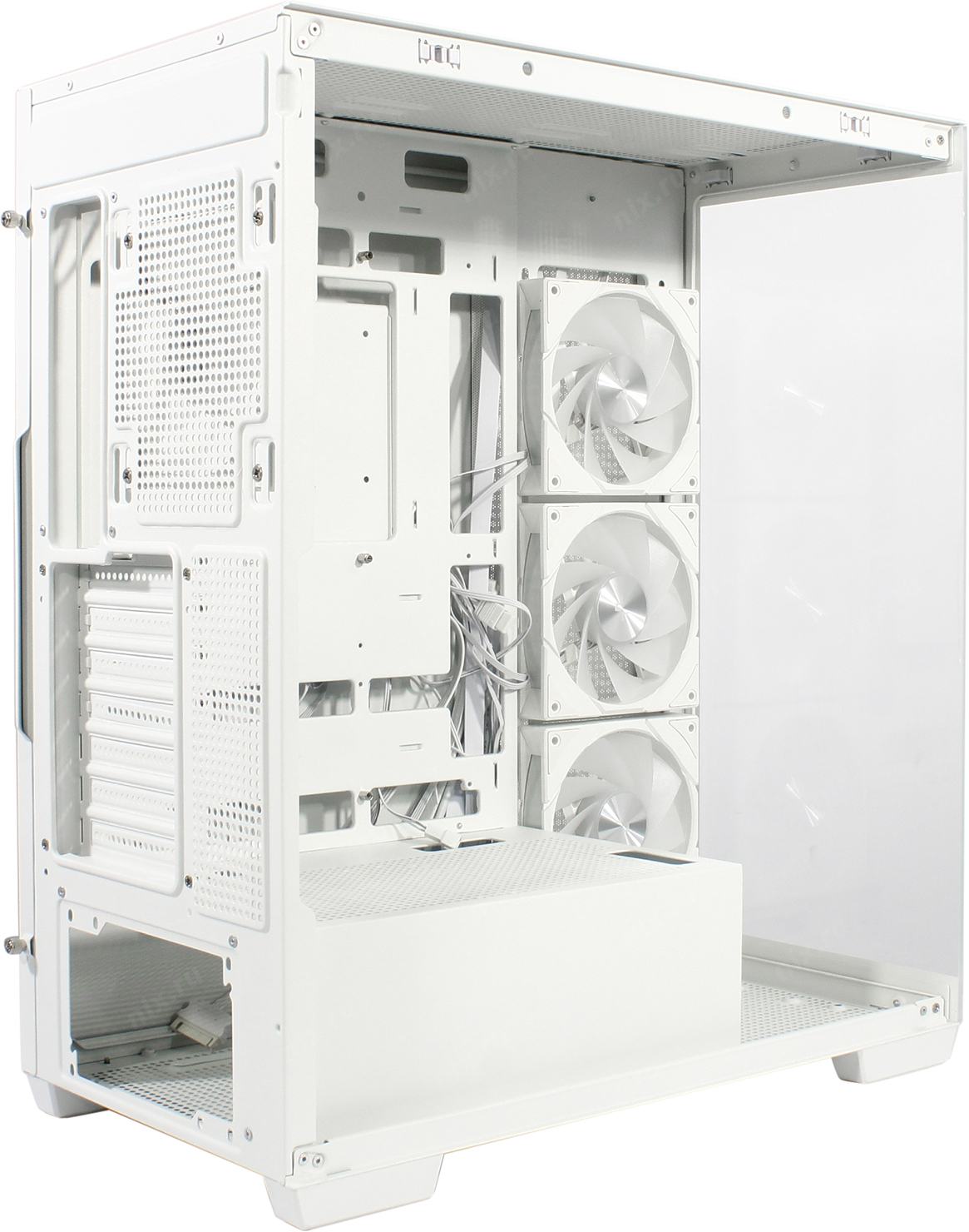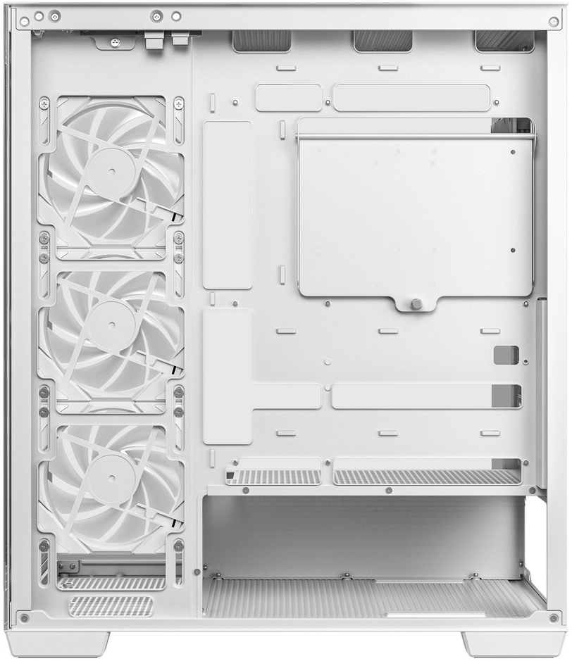 Корпус с уникальным дизайном, Скрытая укладка шлейфов, Быстрый доступ к опорной пластине кулера, Съемная верхняя панель для упрощения монтажа СВО, Съемная передняя панель для упрощения монтажа СВО, Боковая крышка с удобным замком, Полностью прозрачная боковая стенка корпуса, Упоры для дополнительной фиксации плат расширения