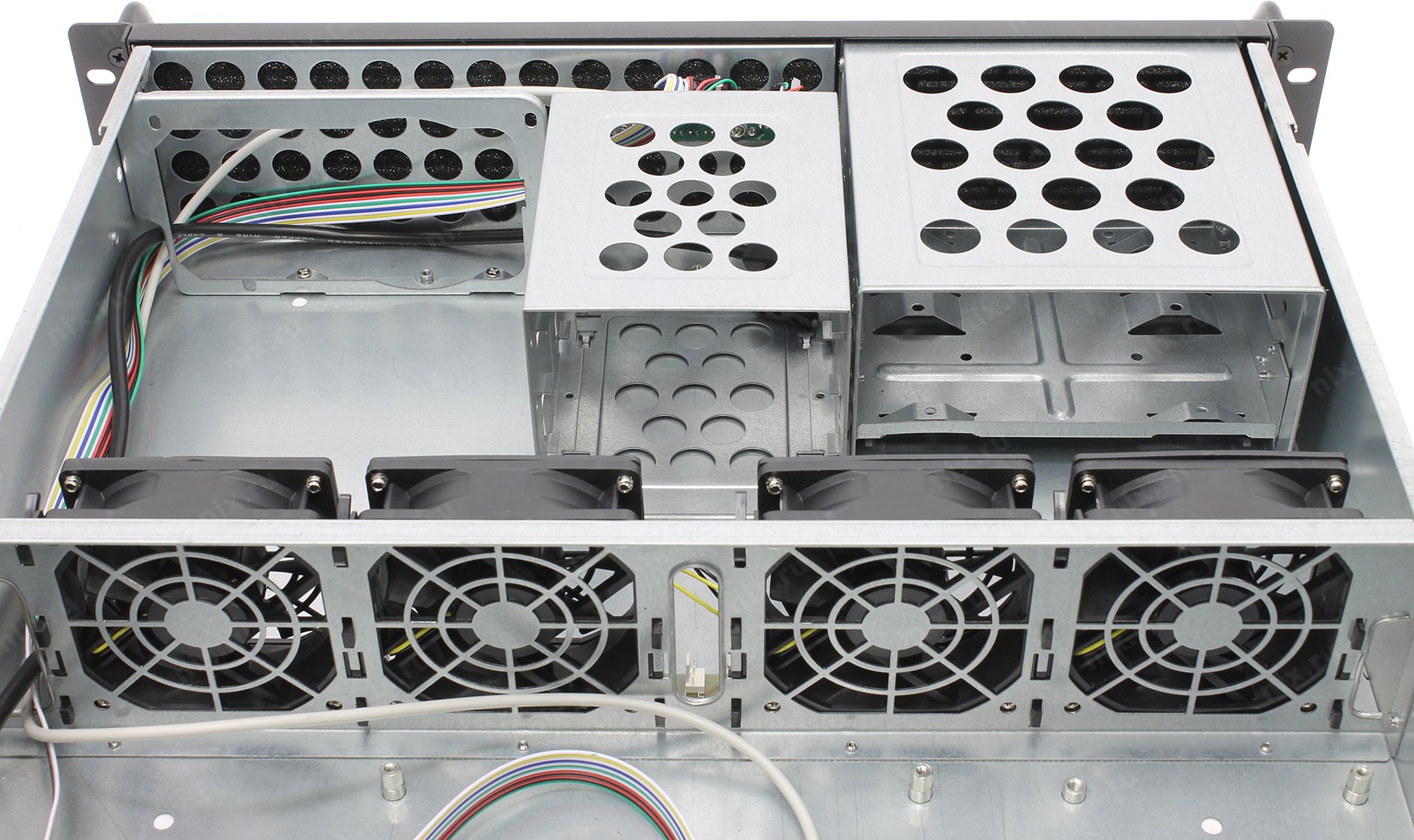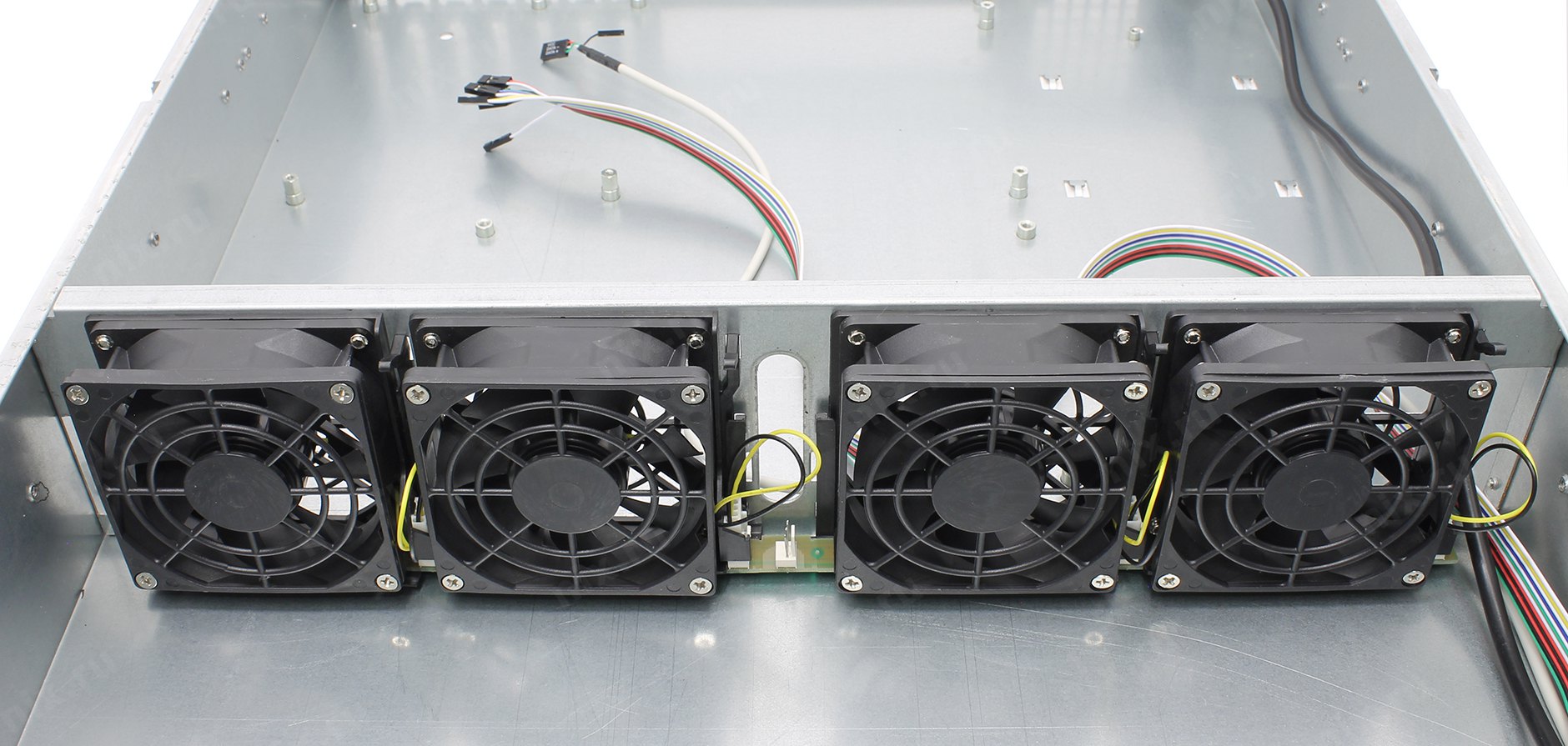 4 вентилятора: 80 x 80 мм (в центре корпуса)
