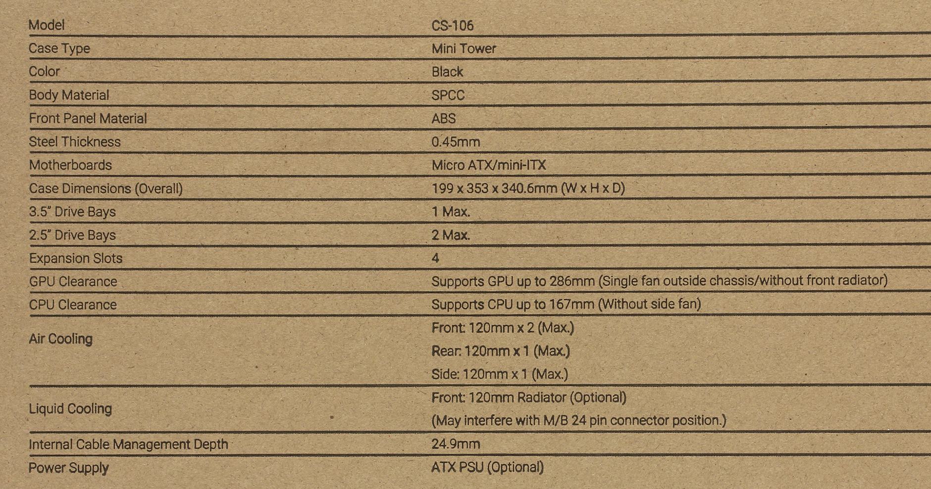 корпус Formula CS-106-S-BK-v1 (mATX, без БП, USB3.0 x1, USB2.0 x1) [4711401661931]