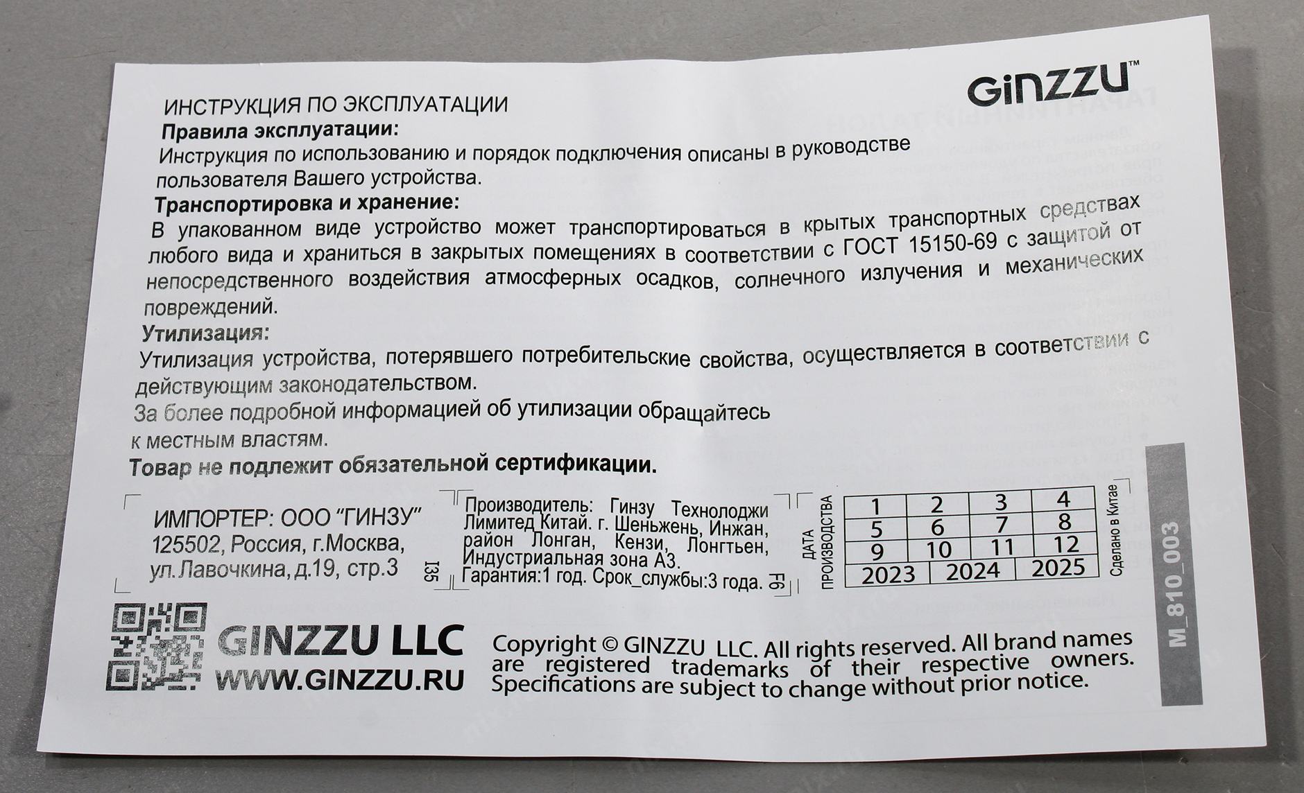 Гарантия 1 год