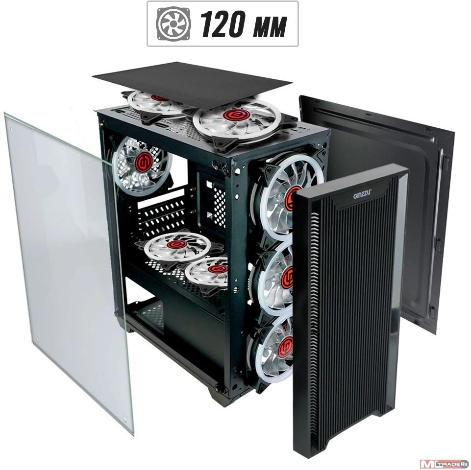 корпус Ginzzu CL650 mATX FAN 4*12FRGB передняя панель Решетка