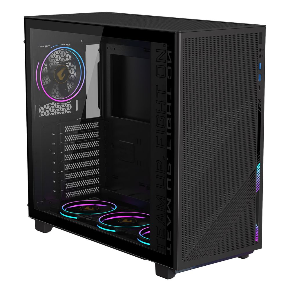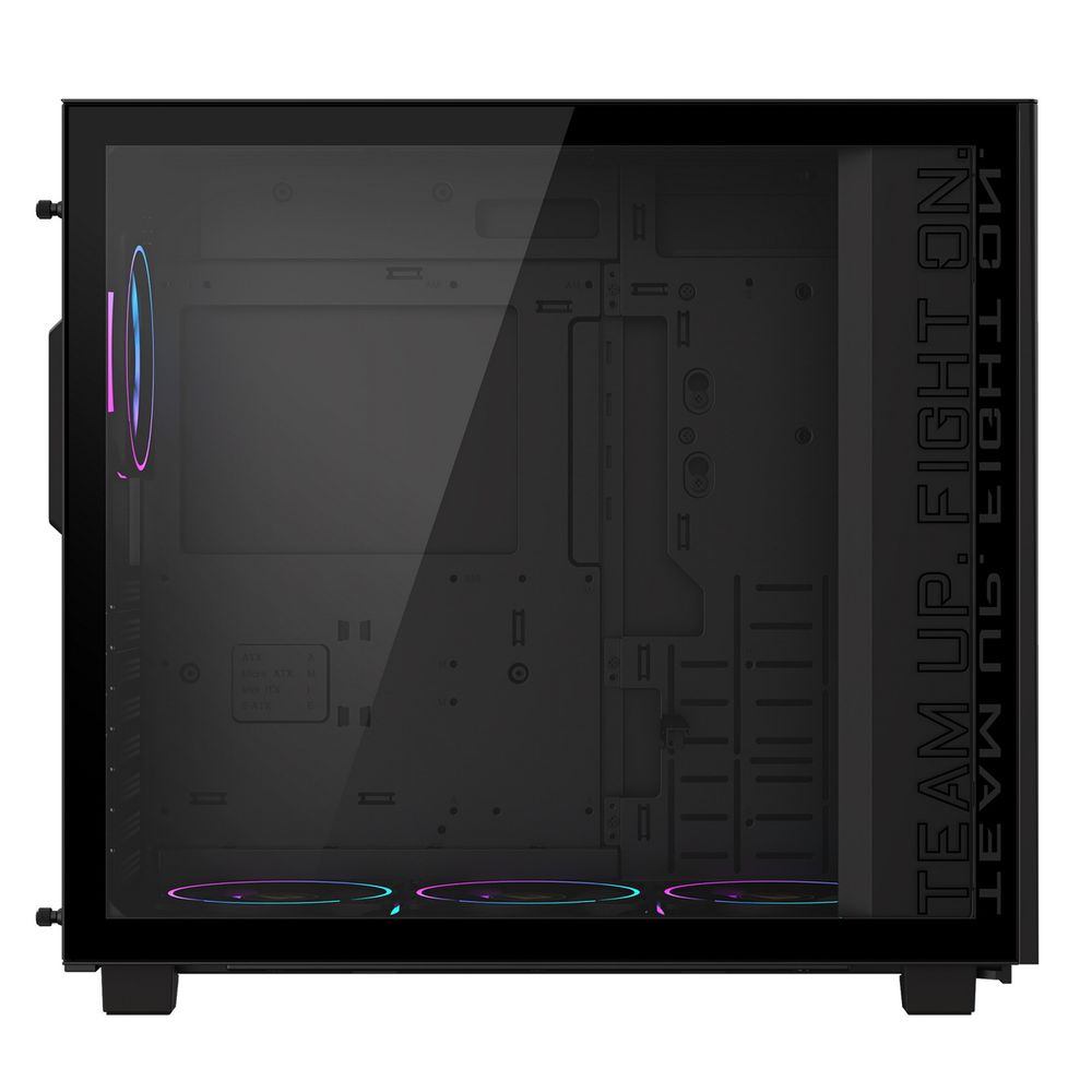 Три нижних и один тыловой 120мм вентилятор с ARGB подсветкой. Встроенная в лицевую панель подсветка.