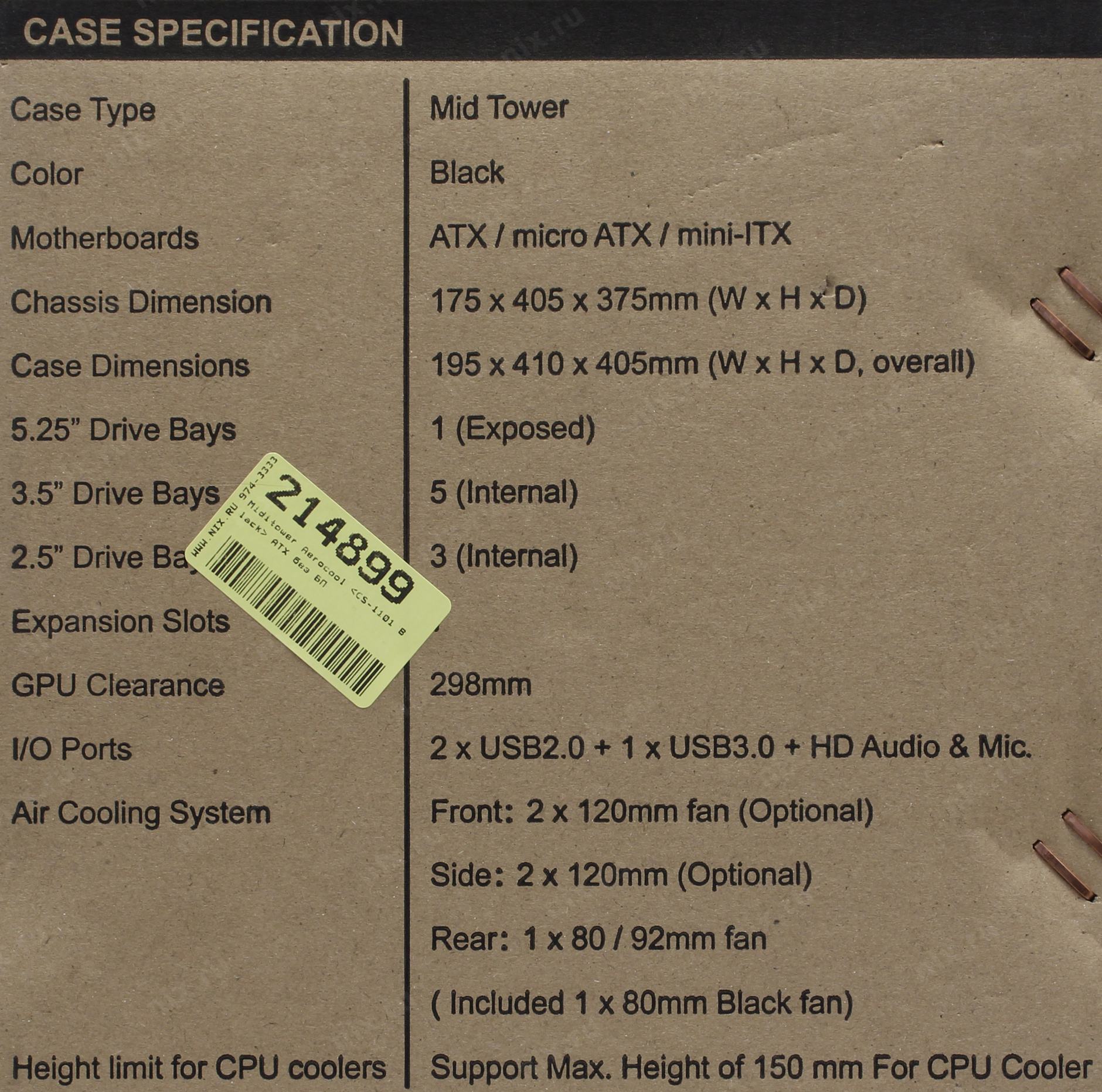 Благодаря семи слотам расширения вы сможете легко установить видеокарту, звуковую карту или другие дополнительные устройства. Размещение HDD в корпусе осуществляется продольно, что обеспечивает удобный доступ к устройствам хранения данных и облегчает процесс установки и обслуживания.