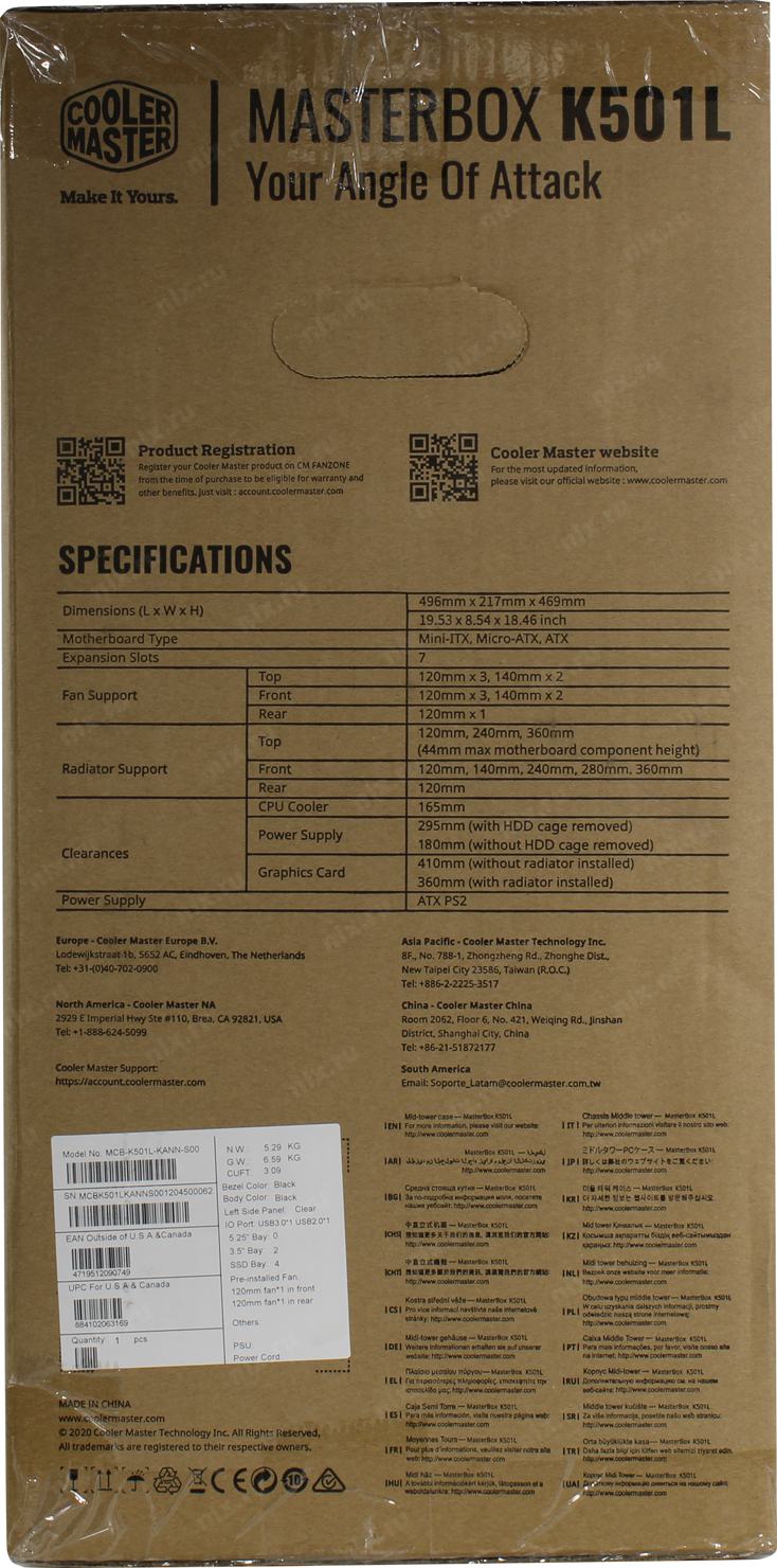 Корпус Miditower Cooler Master < MCB-K501L-KANN-S00> Masterbox K501L Black& Black ATX без БП, с окном