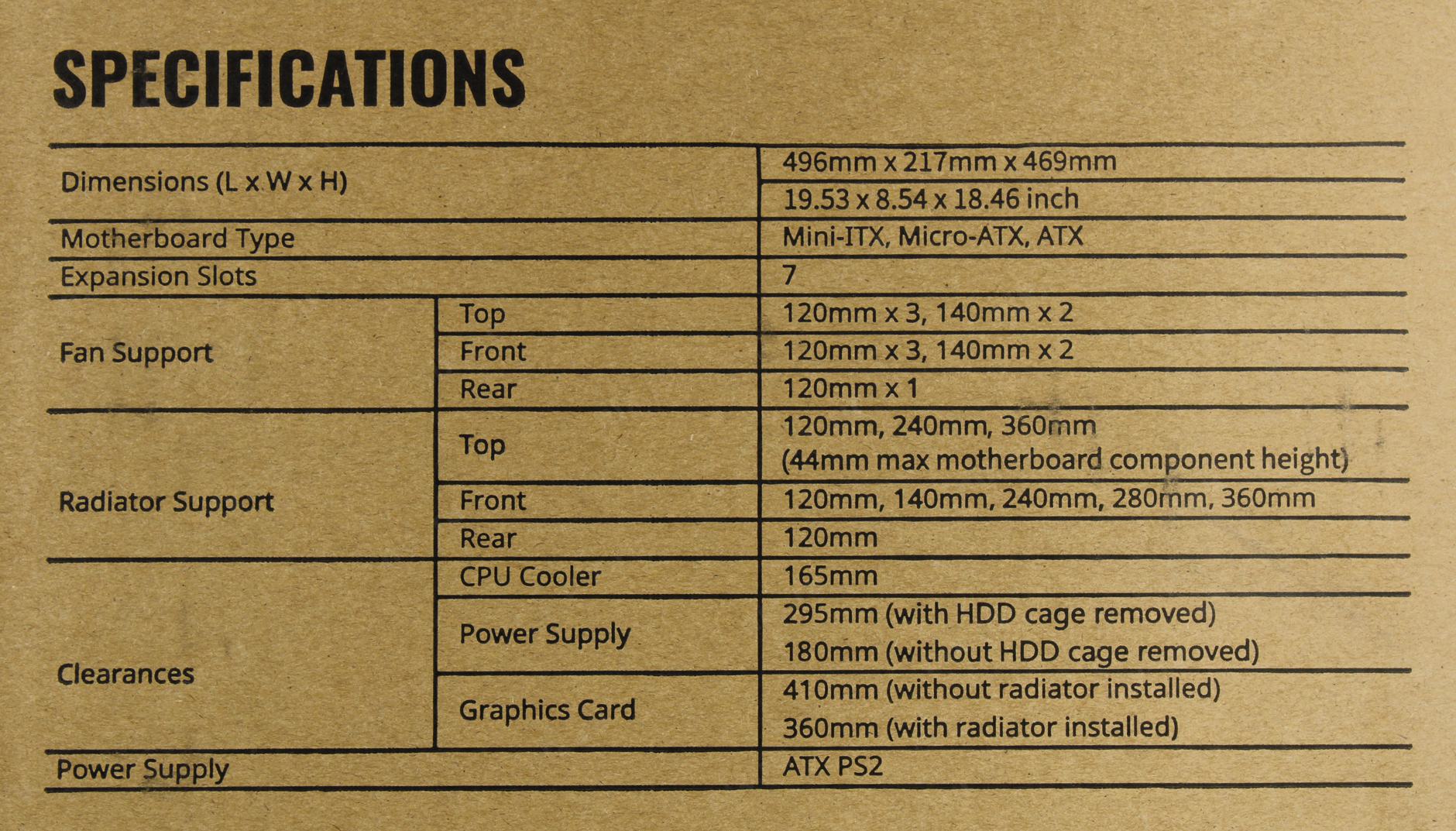 2 вентилятора: 120 x 120 мм (1 на передней и 1 на задней панели)