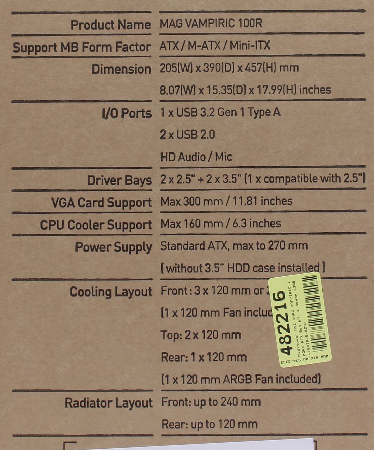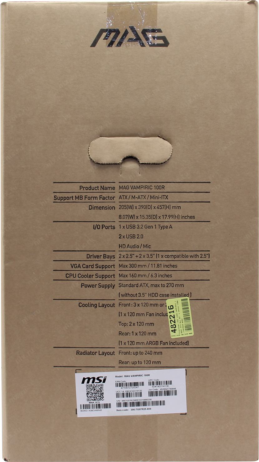 Корпус Miditower MSI < MAG VAMPIRIC 100R> ATX без БП, с окном < 306-7G07R25-809>