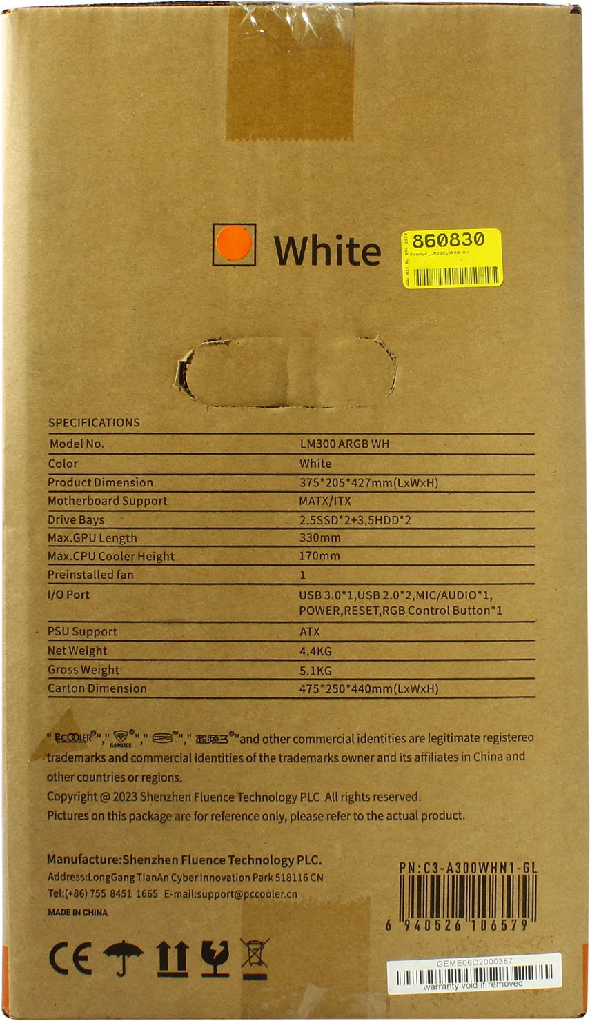 Корпус Miditower PcCooler < LM300 ARGB WH> ATX без БП