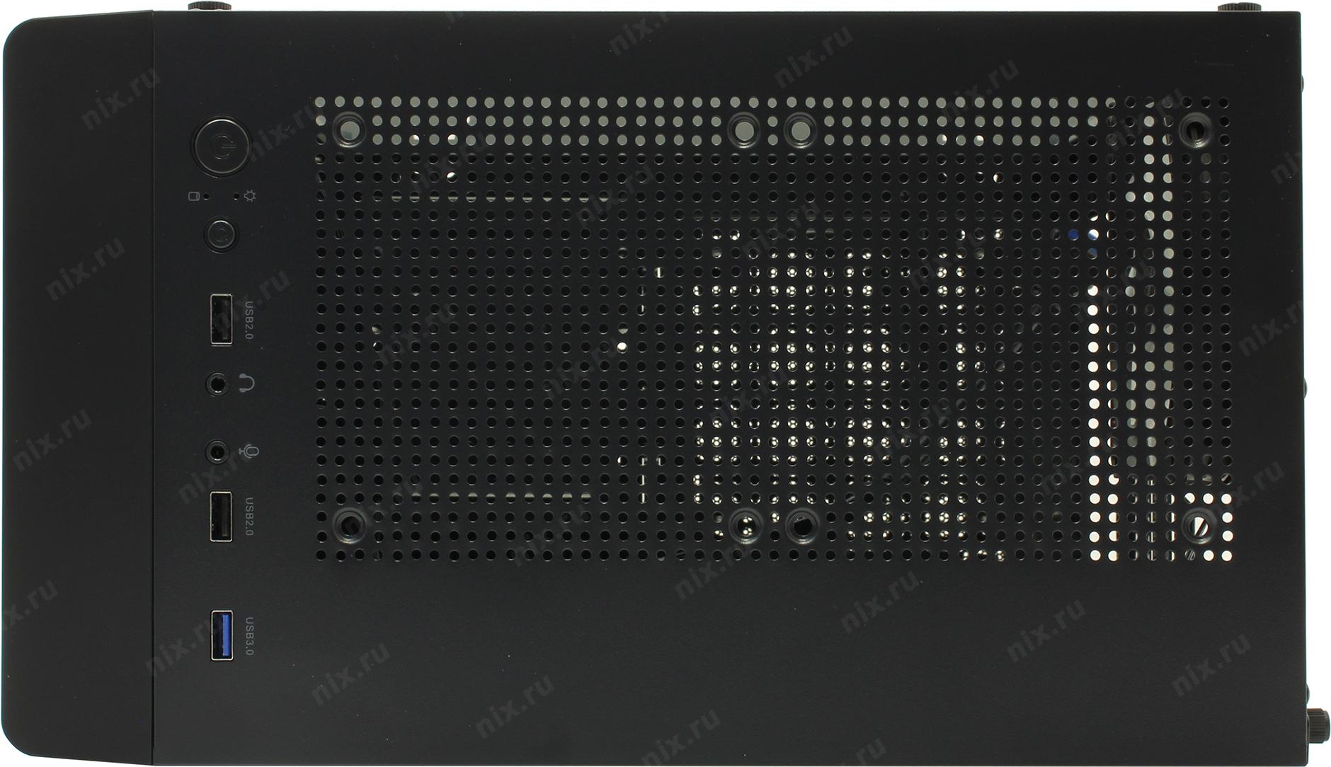 Снизу, с забором воздуха через фильтр снаружи корпуса, что обеспечивает лучшее охлаждение в системе и малошумность.