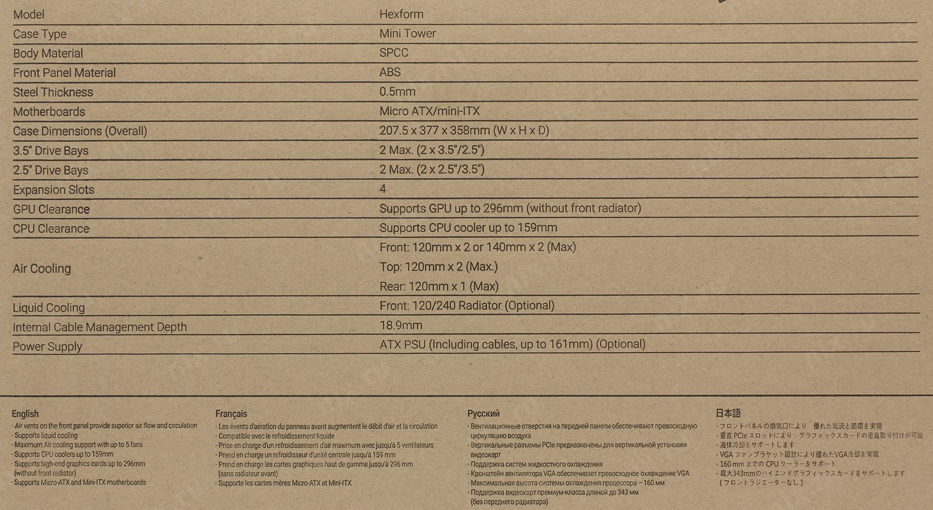 2 вентилятора: 140 x 140 или 120 x 120 мм, включая установленные вентиляторы