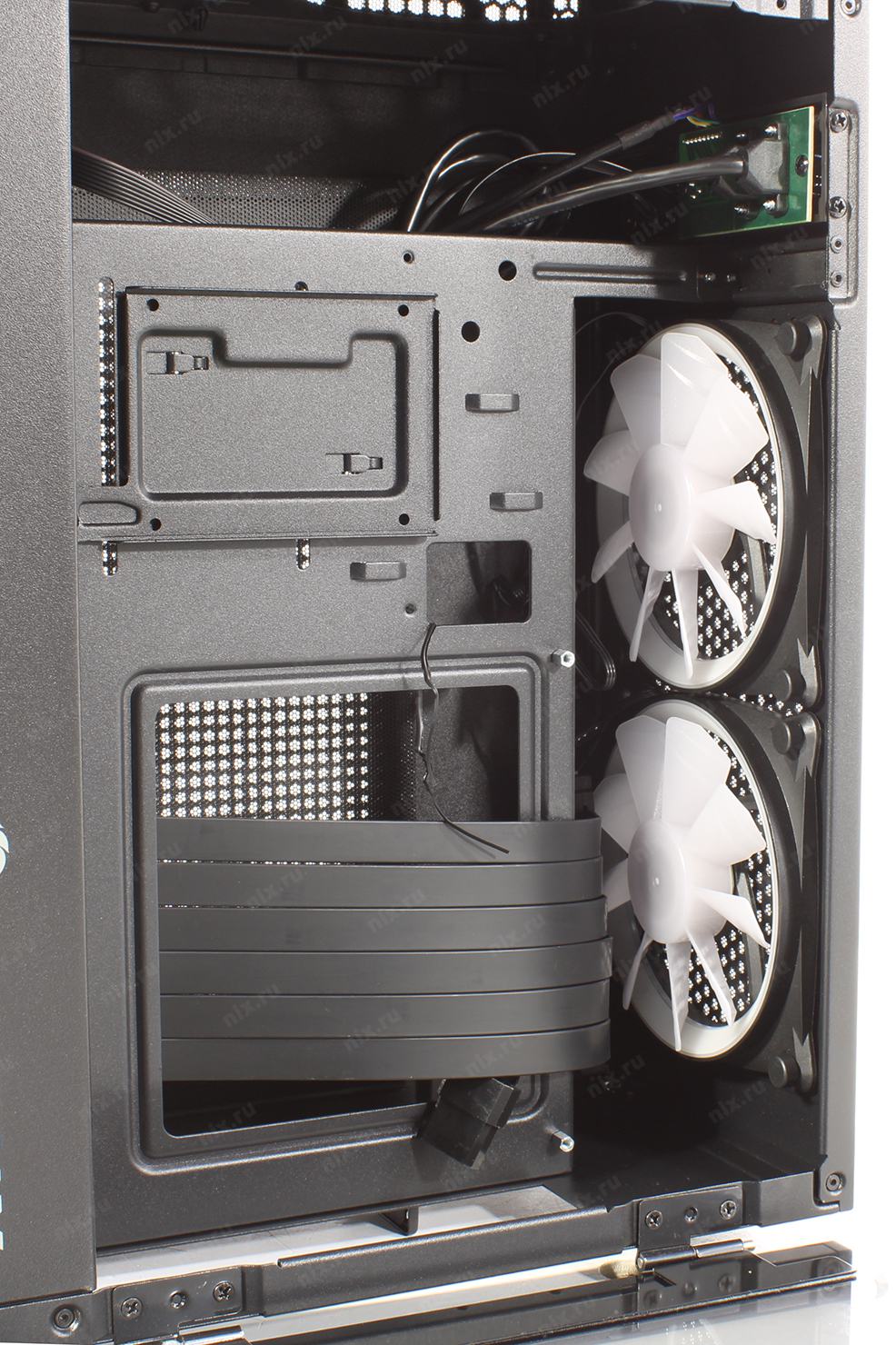 2 вентилятора: 120 x 120 мм (на верхней панели)