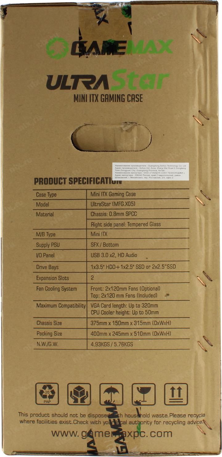 Корпус Minitower GameMax < UltraStar (MFG.X05) > Mini-ITX без БП, с окном