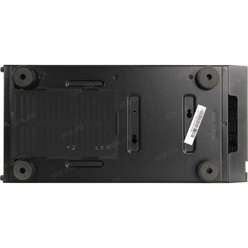 Снизу, с забором воздуха через фильтр снаружи корпуса, что обеспечивает лучшее охлаждение в системе и малошумность.