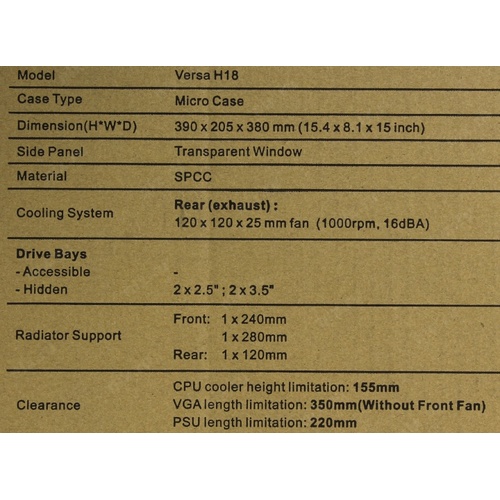 Корпус Thermaltake Case Tt Versa H18 черный без БП [CA-1J4-00S1WN-00]