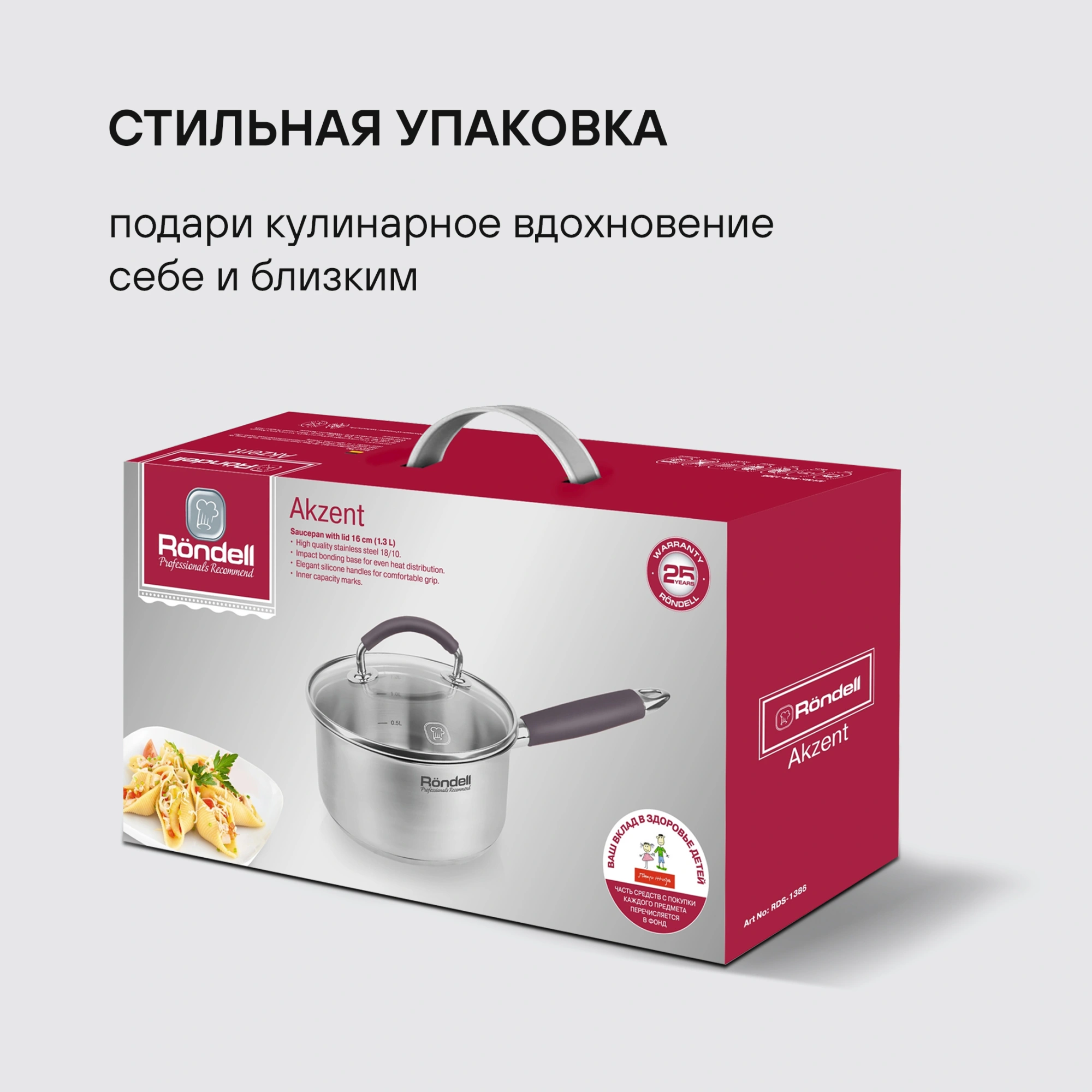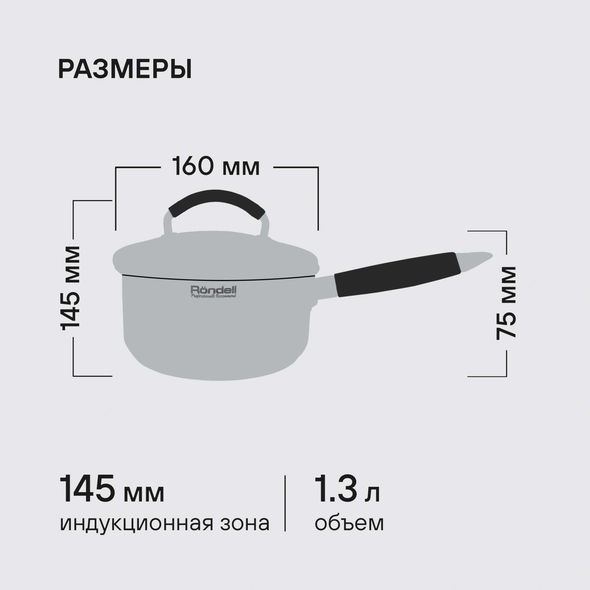 Ковш Rondell Akzent RDS-1386 1.3л. d=16см (с крышкой) стальной