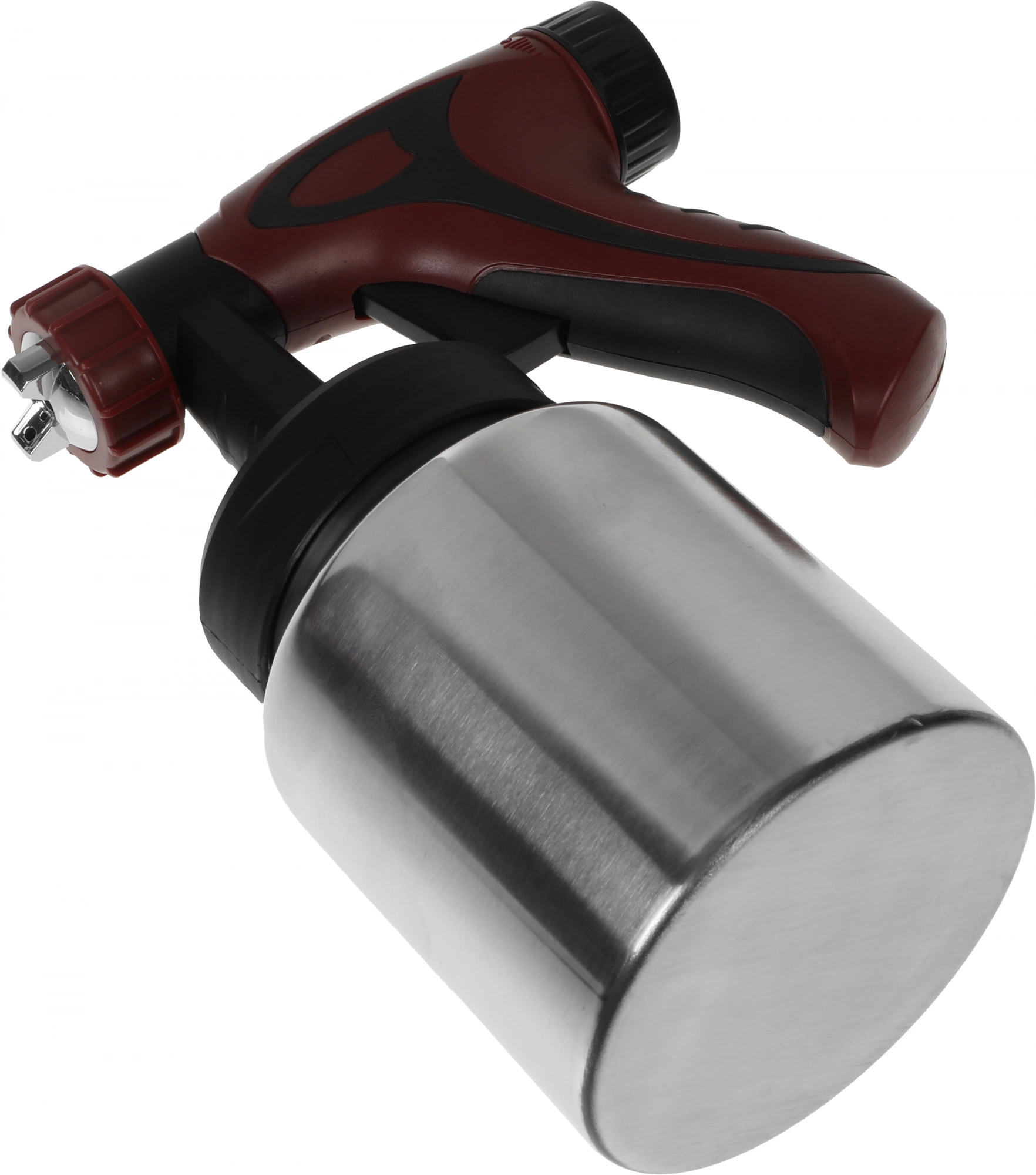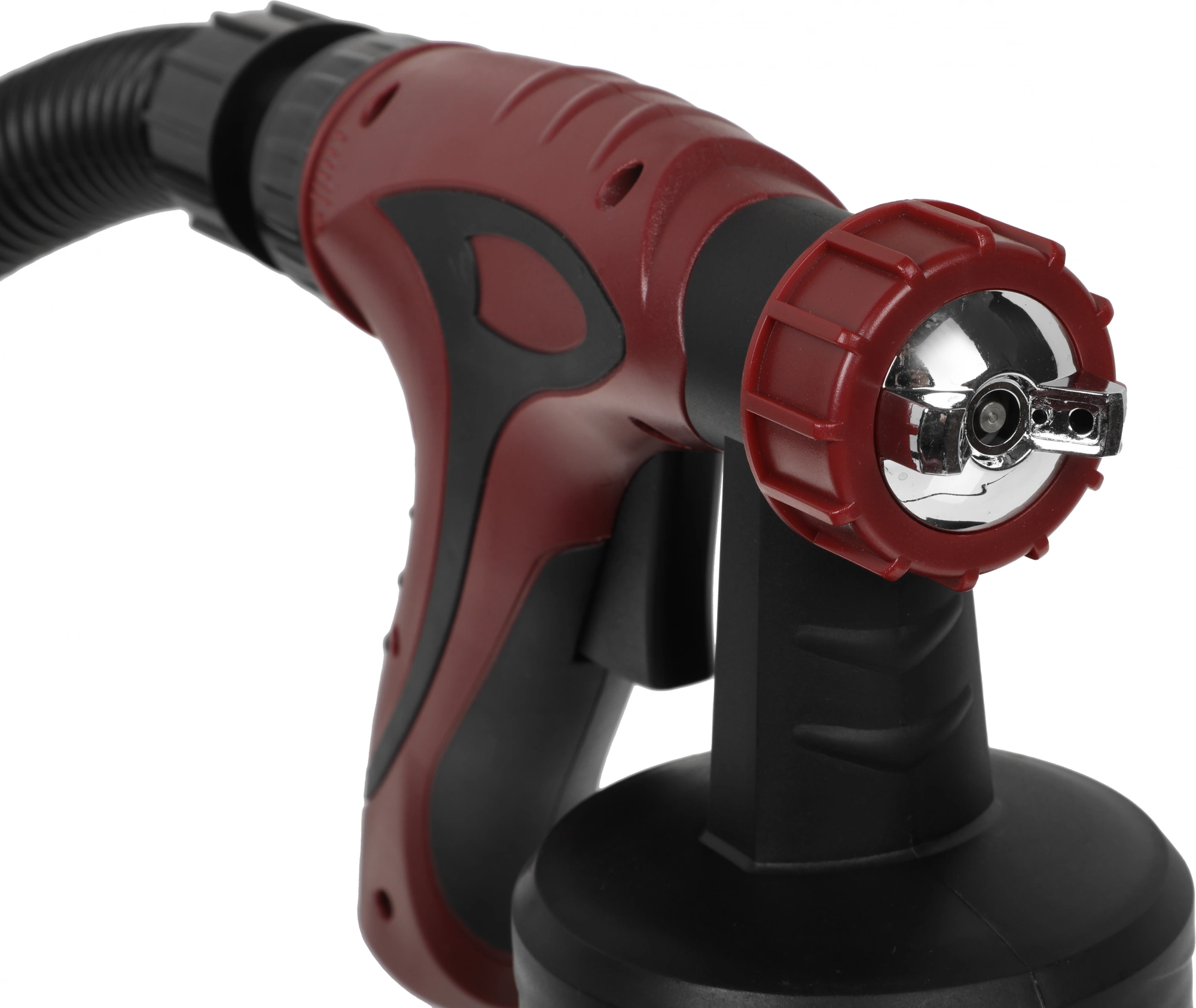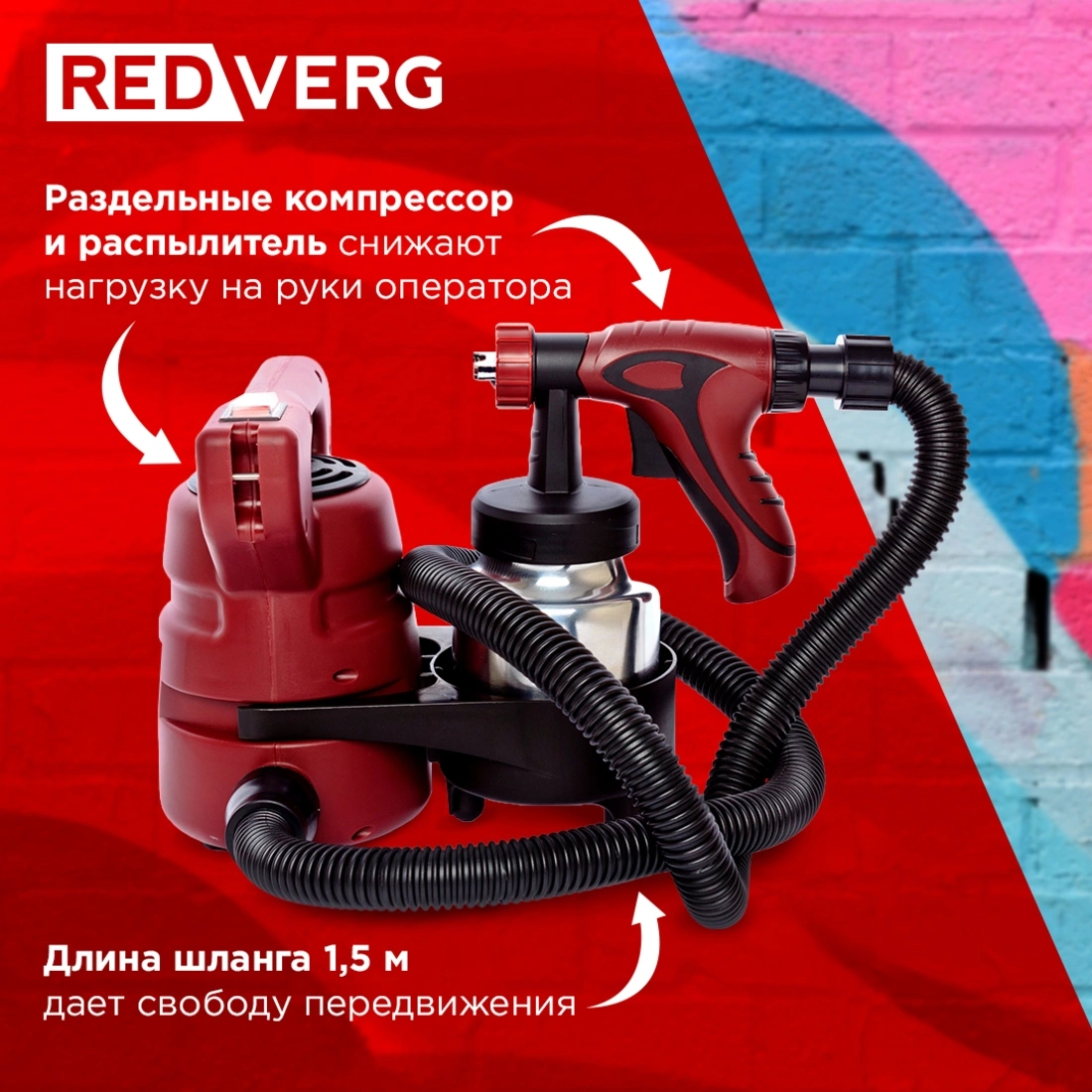 Может распылять любые краски, кроме латексных и дисперсионных, поскольку концентрация кислоты в них превышает допустимые для оборудования пределы. Длина шланга до компрессора составляет 1, 5 м, что дает оператору определенную свободу передвижения и практически не стесняет его в действиях.