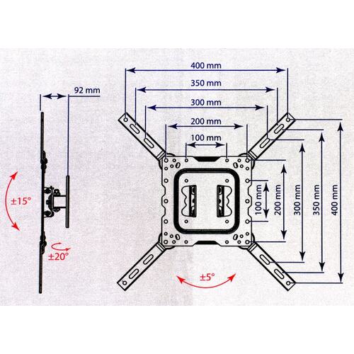 VESA 100 x 100, VESA 200 x 100, VESA 200 x 200, VESA 300 x 200, VESA 300 x 300, VESA 400 x 200, VESA 400 x 300, VESA 400 x 400