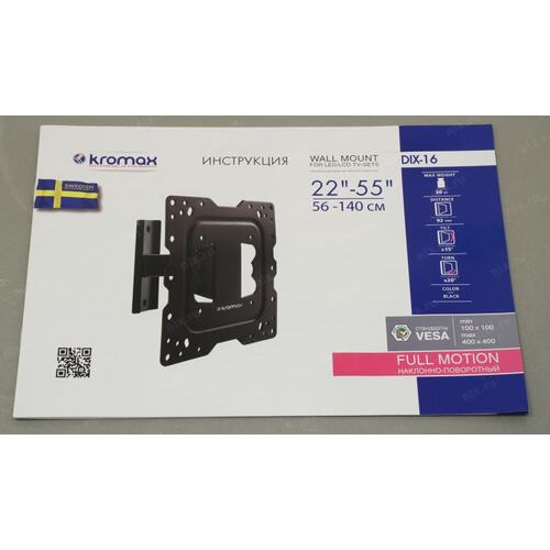 Крепеж Kromax DIX-16 black, Кр. стал. наст. для TV 22"-55", max 30 кг, 3 ст св., нак. ±15°, пов. ±20°, от ст. 92 мм, max VESA 400x400 мм. [DIX-16black]