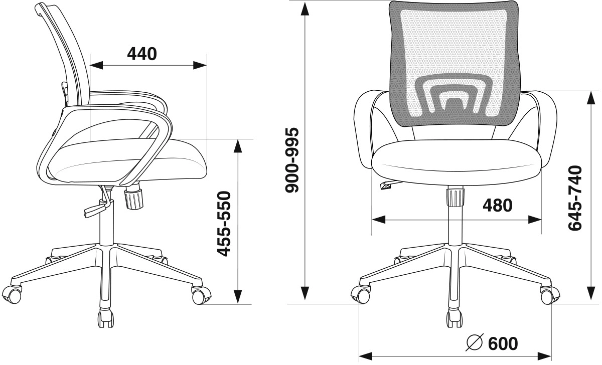 Кресло Бюрократ CH-695N черный TW-01 сиденье черный TW-11 сетка/ ткань крестов. пластик CH-695N/ BLACK