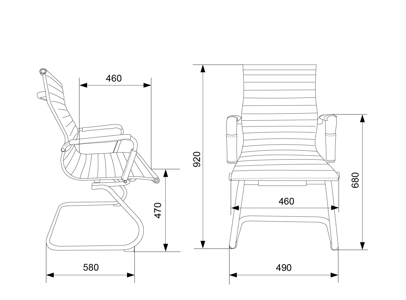 Высота с подлокотниками MIN