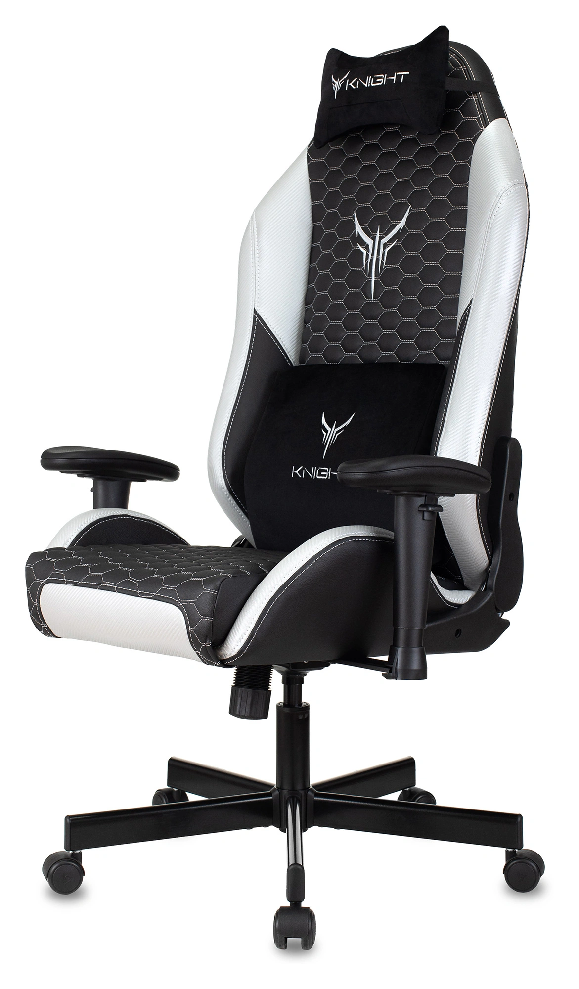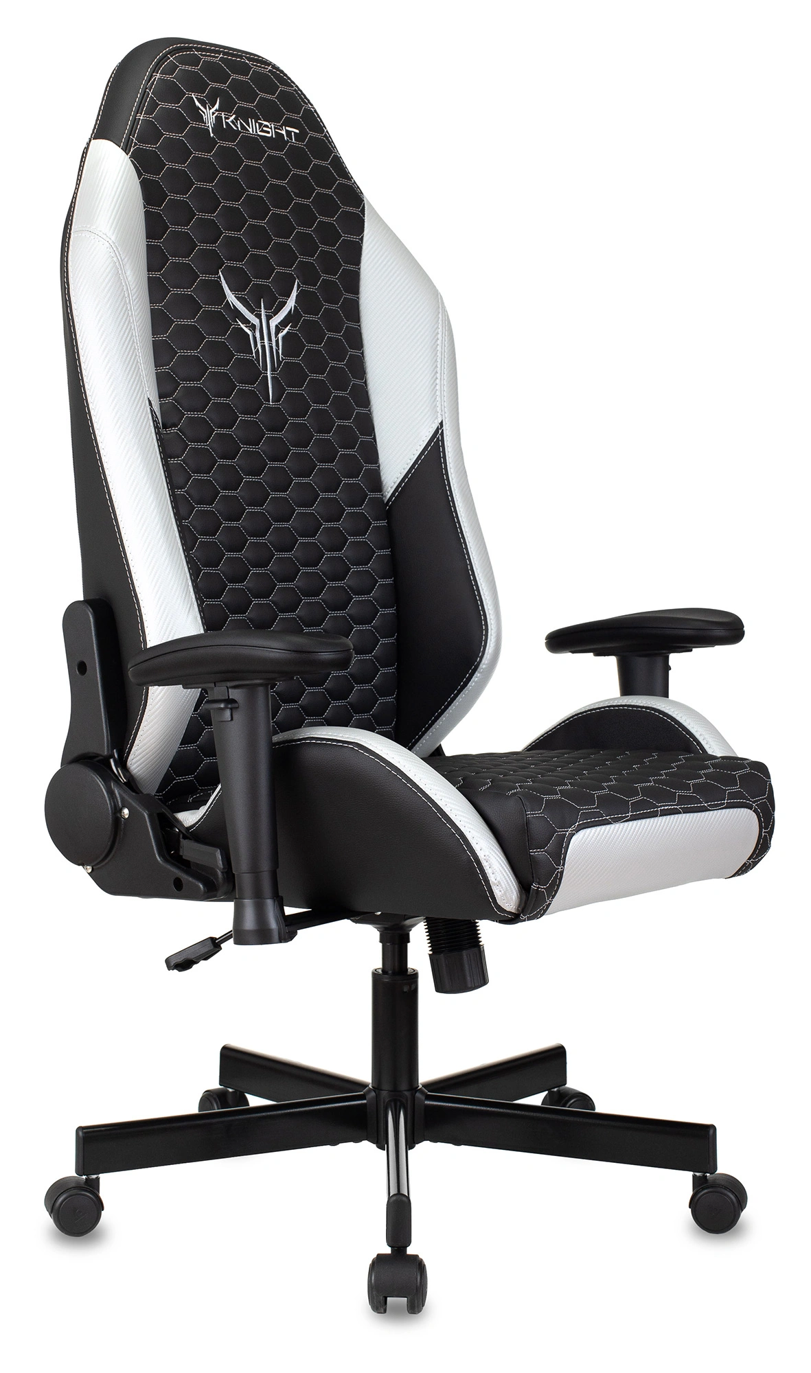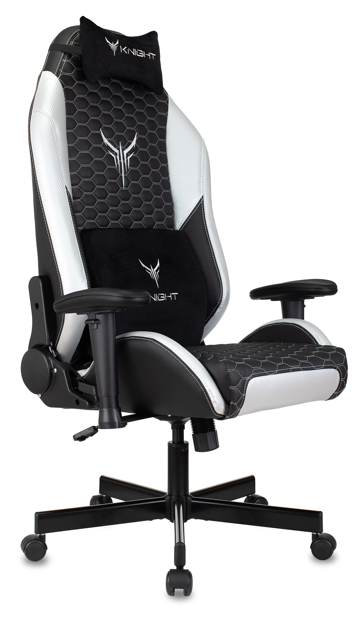 Кресло игровое Knight Neon черный/ серебряный соты экокожа с подголов. крестов. металл KNIGHT NEON SILVER
