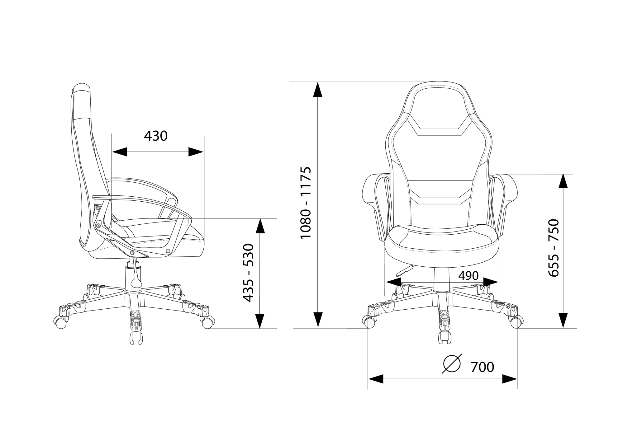 Высота с подлокотниками min