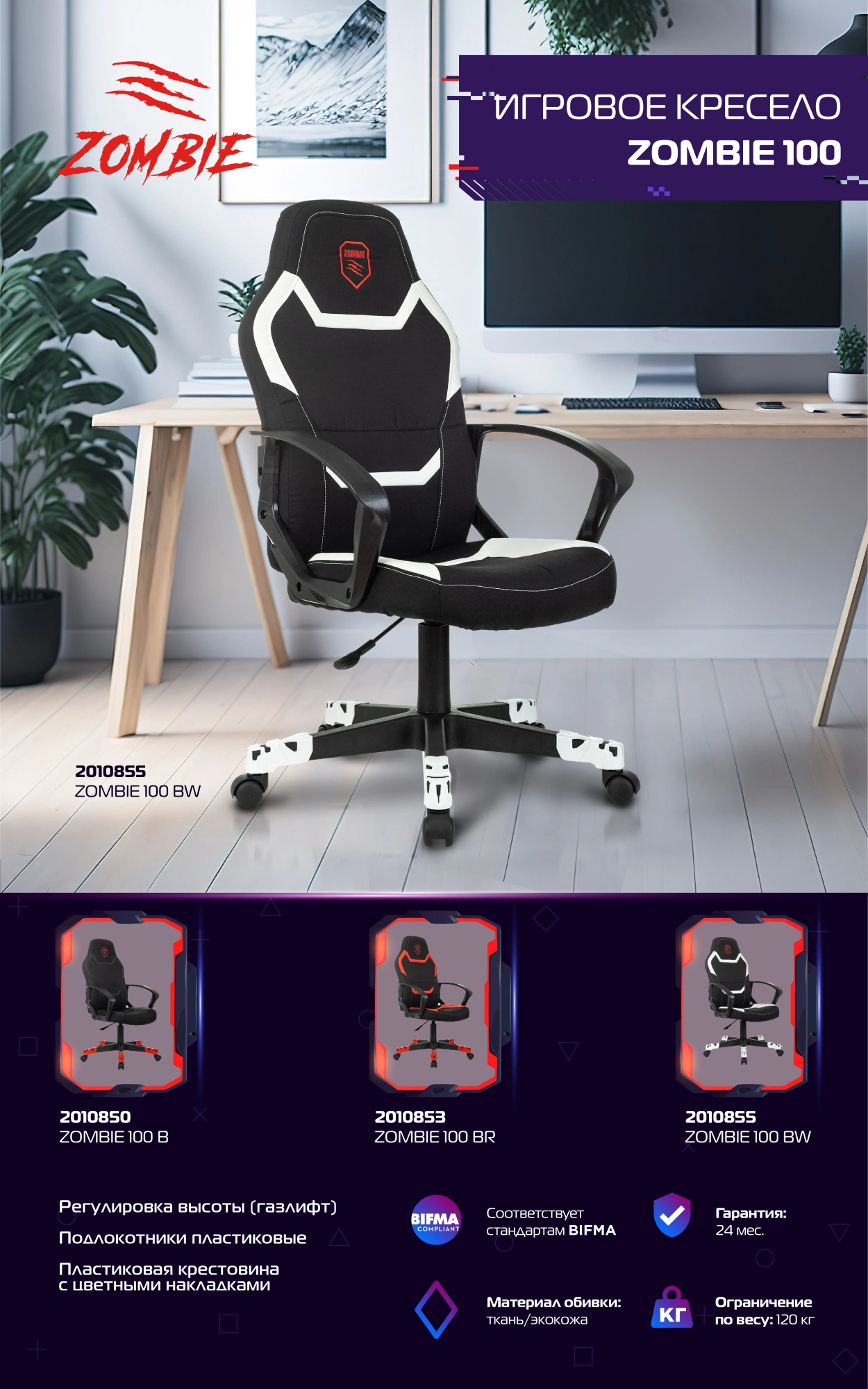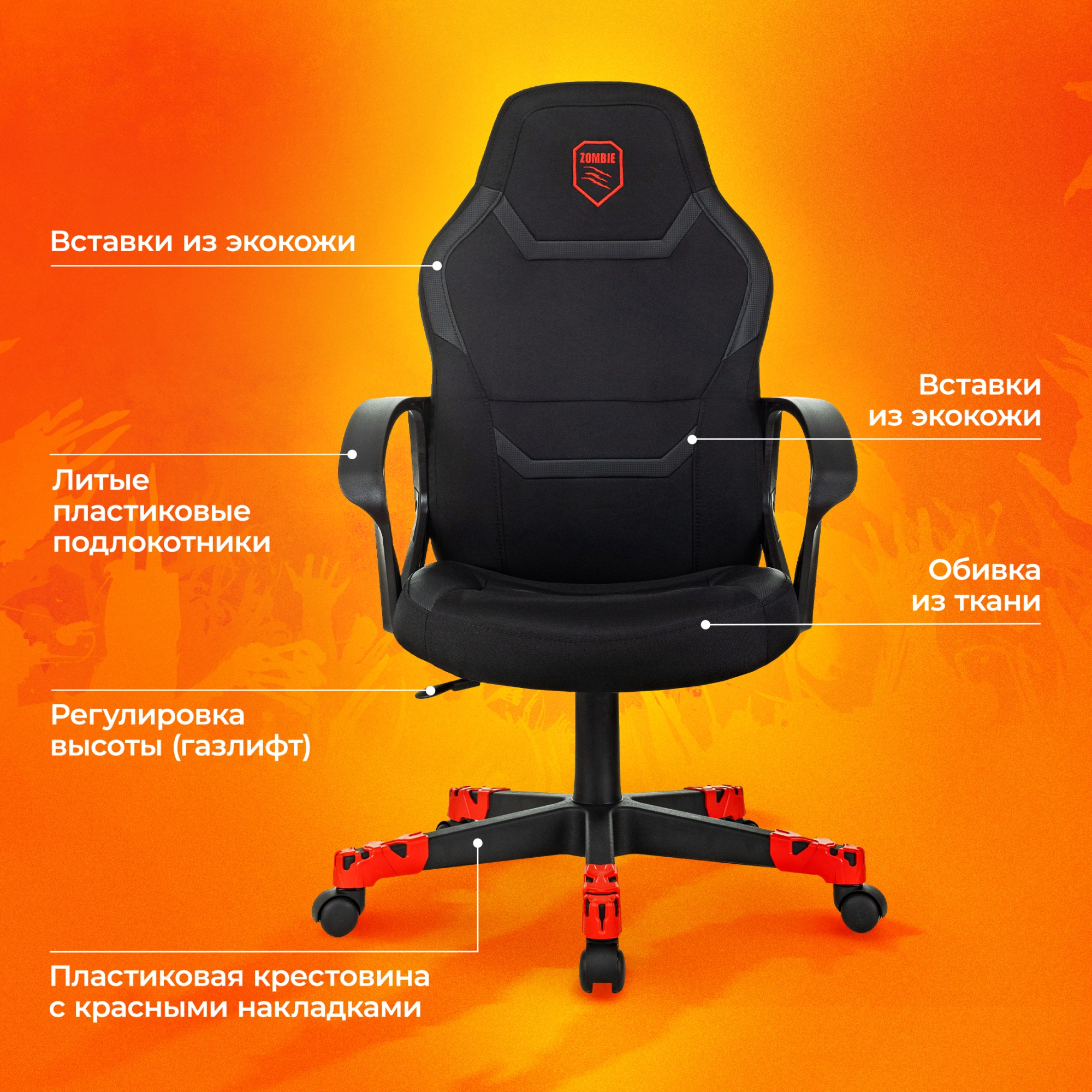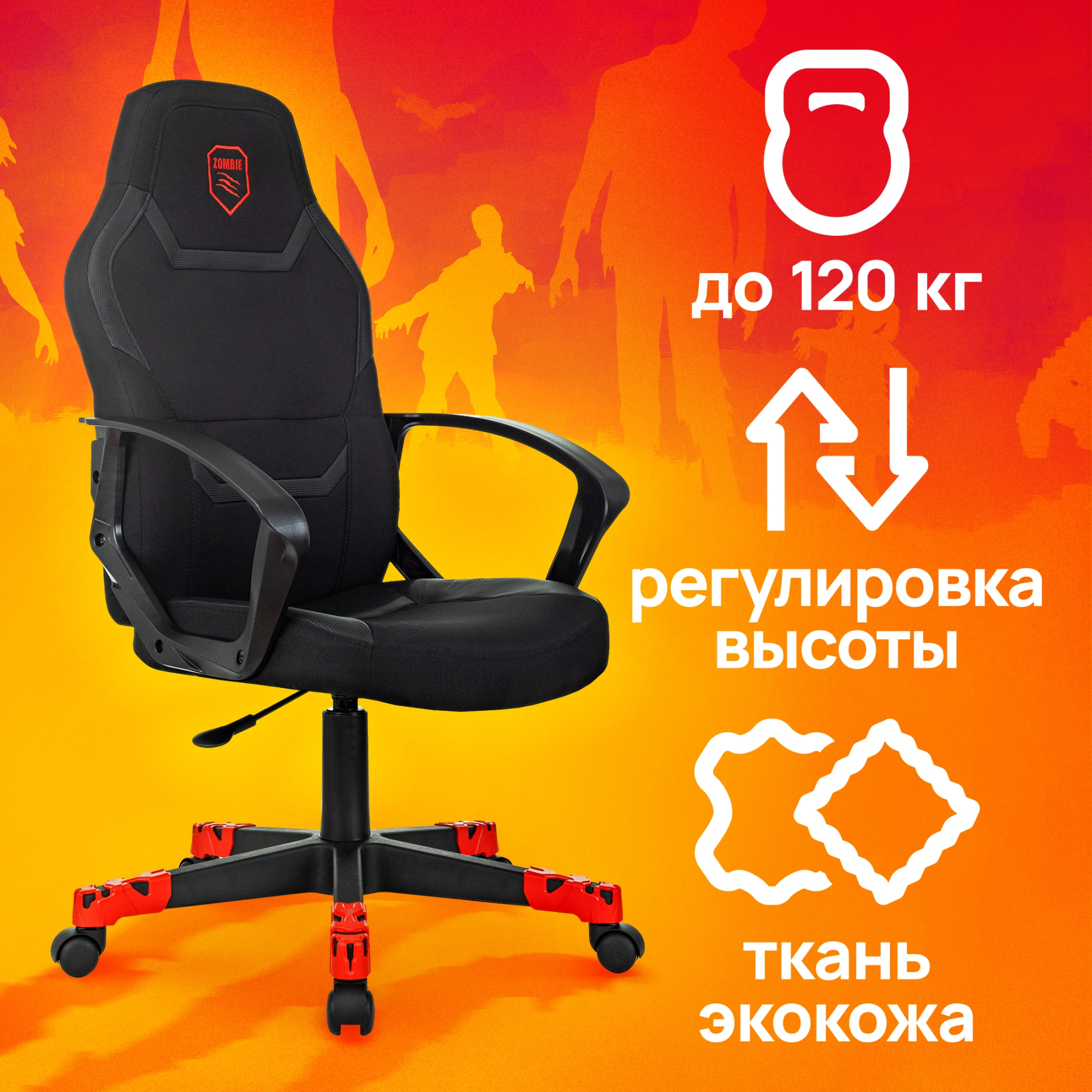 Кресло игровое Zombie 100 черный ткань/эко.кожа крестов. пластик пластик черный ZOMBIE 100 B | НИКС Екатеринбург