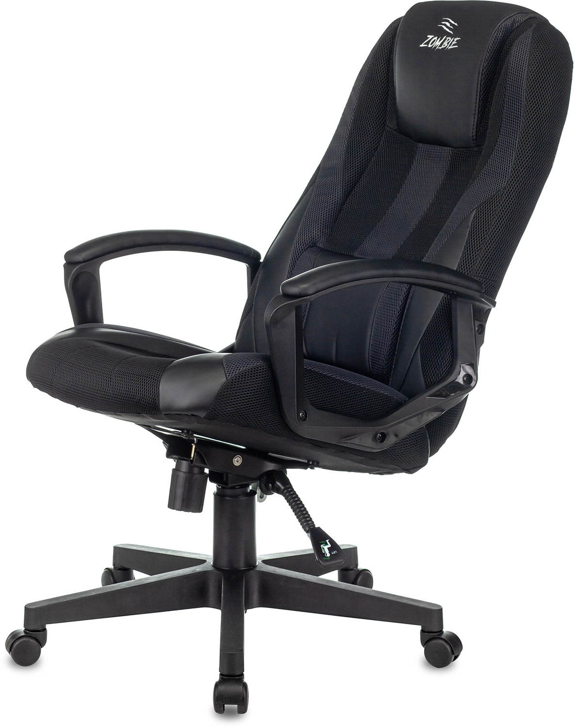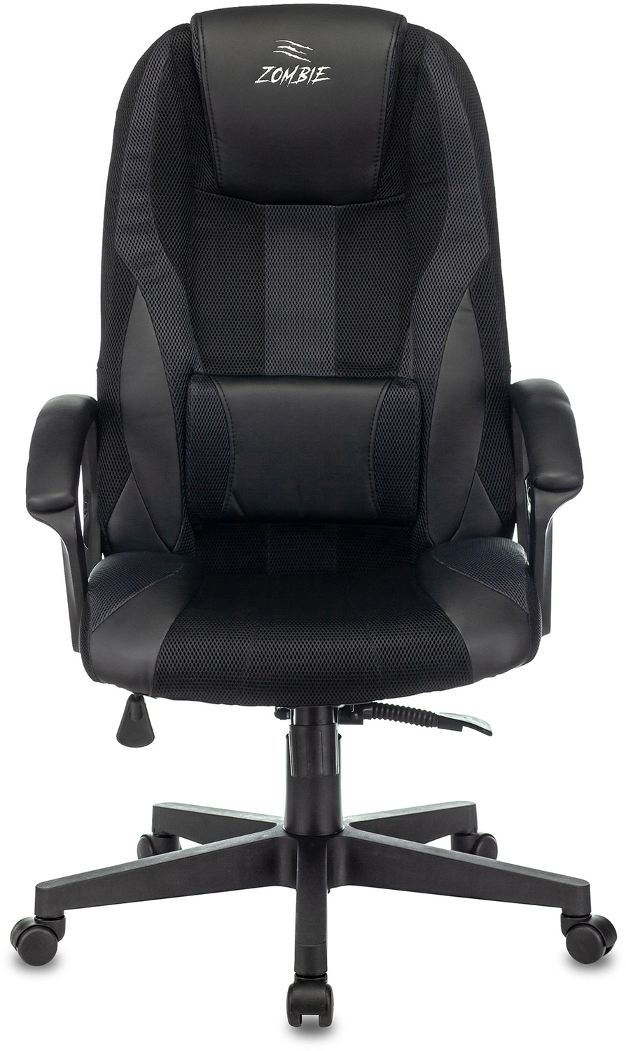 Кресло игровое Zombie 9 черный/ серый ткань/ эко.кожа крестов. пластик ZOMBIE 9 BLACK