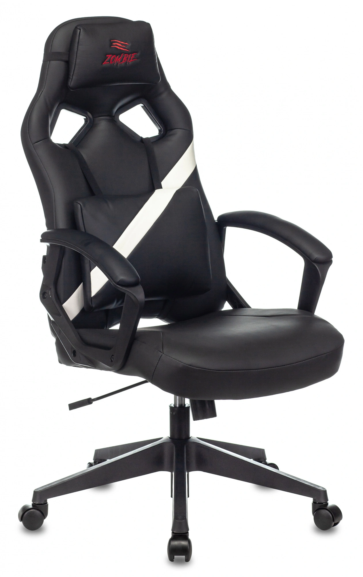 Кресло игровое Zombie Driver черный/белый экокожа с подголов. крестов. пластик ZOMBIE DRIVER WH