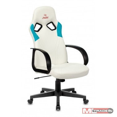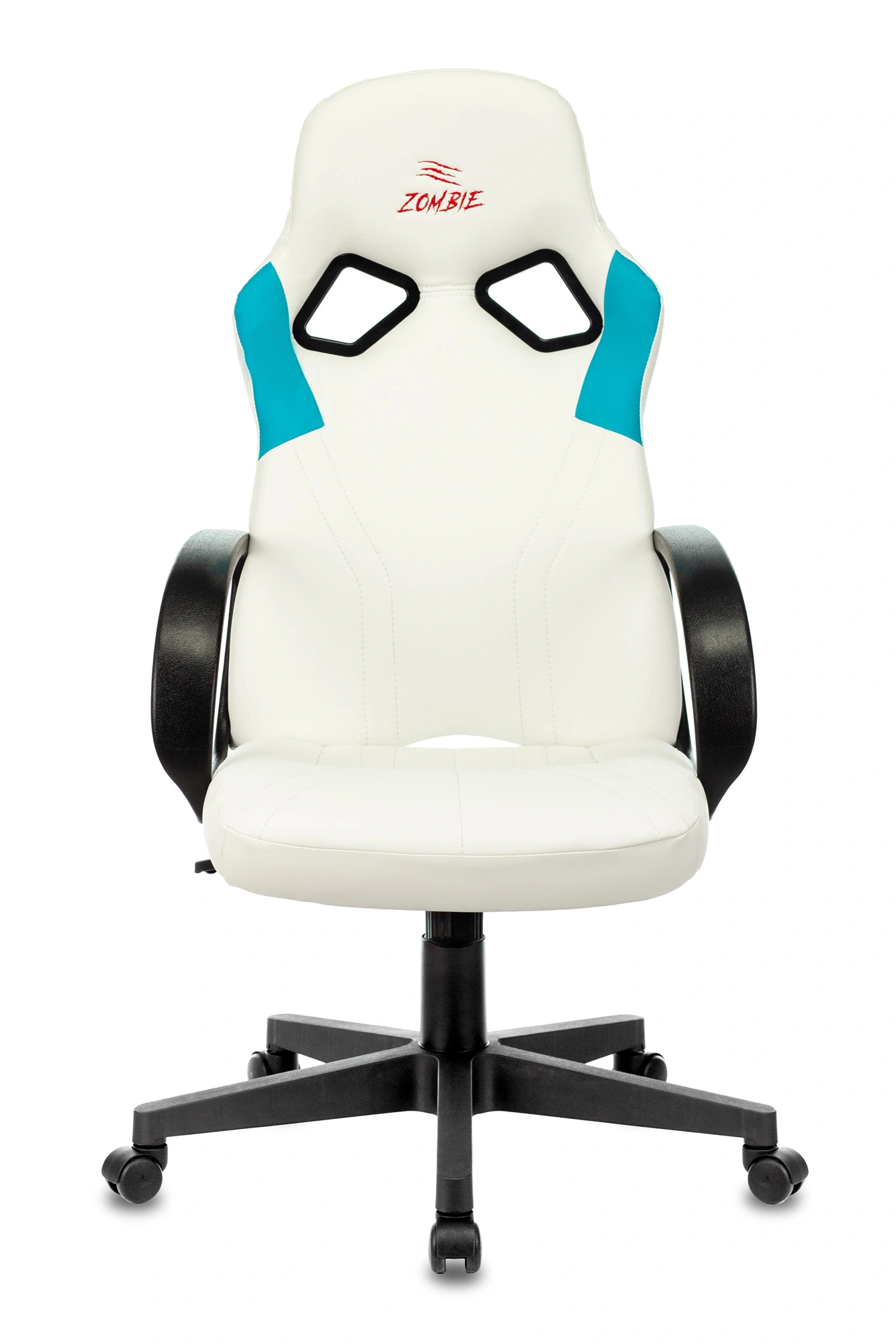Кресло игровое Zombie RUNNER белый/голубой экокожа крестов. пластик ZOMBIE RUNNER WHITE