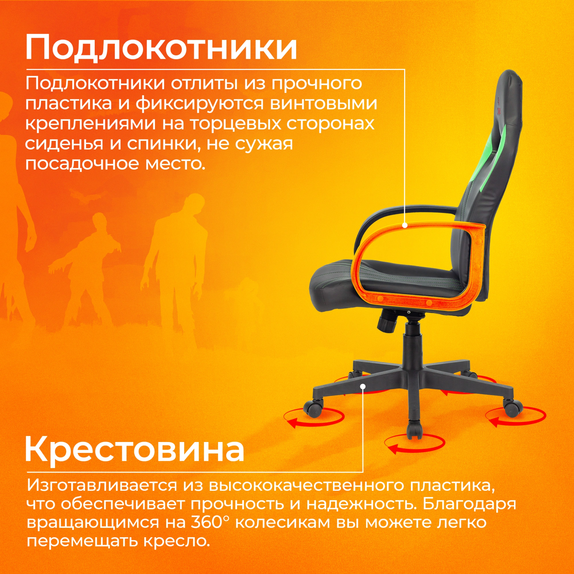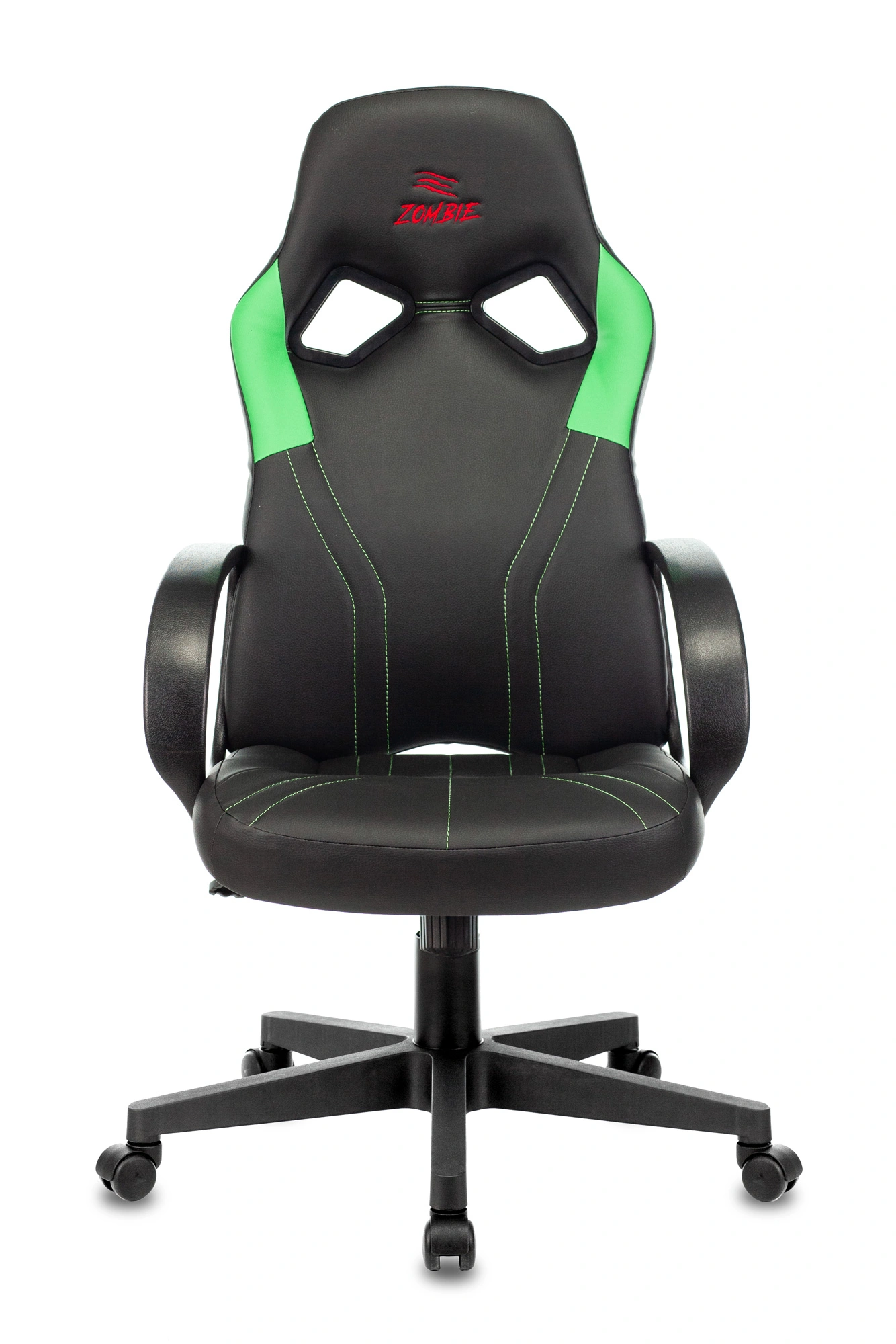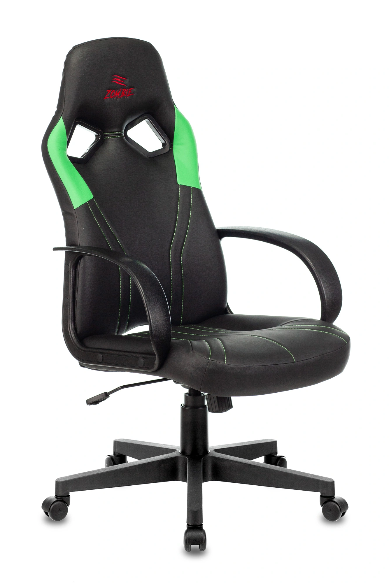 Кресло игровое Zombie RUNNER черный/ зеленый экокожа крестов. пластик ZOMBIE RUNNER GREEN