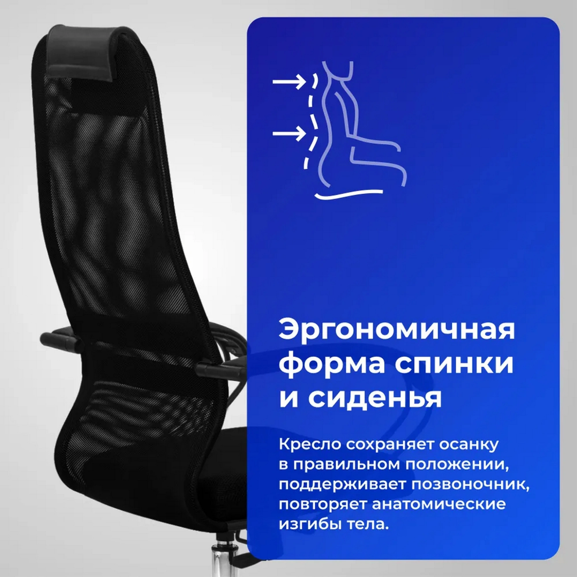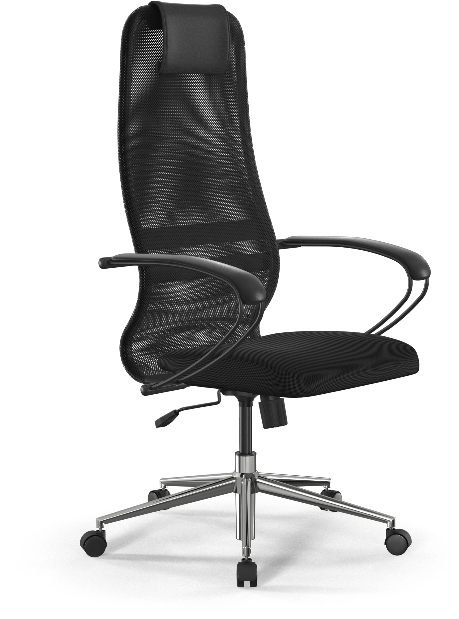 Кресло Метта SU-B-8 черный сиденье черный сетка/ ткань с подголов. крестов. металл хром ZDA.12.1.2A2