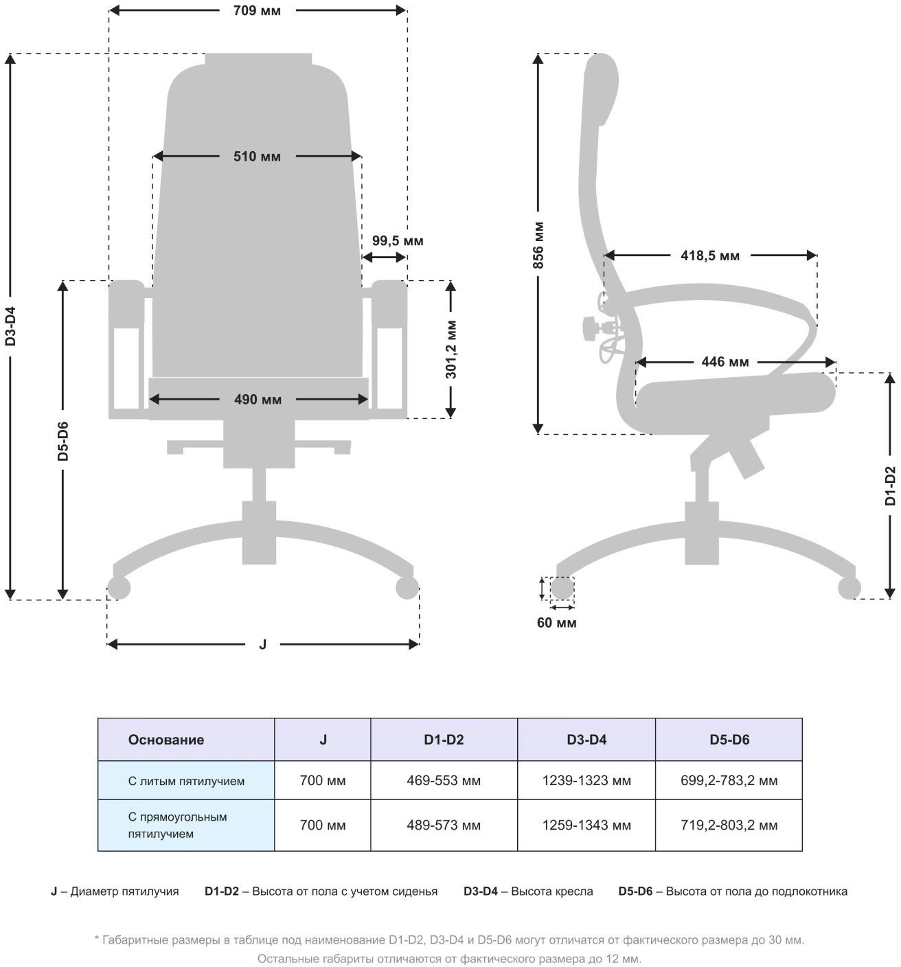 высоты (газлифт) , высоты сиденья (без спинки) , глубины сиденья, поясничной области