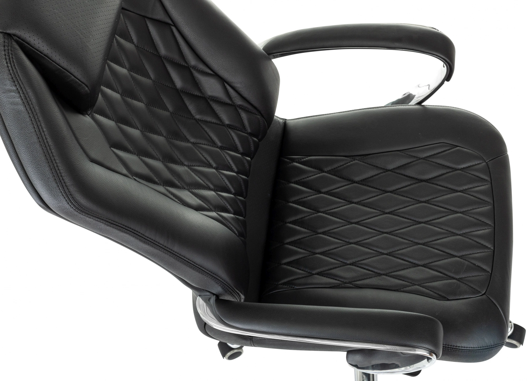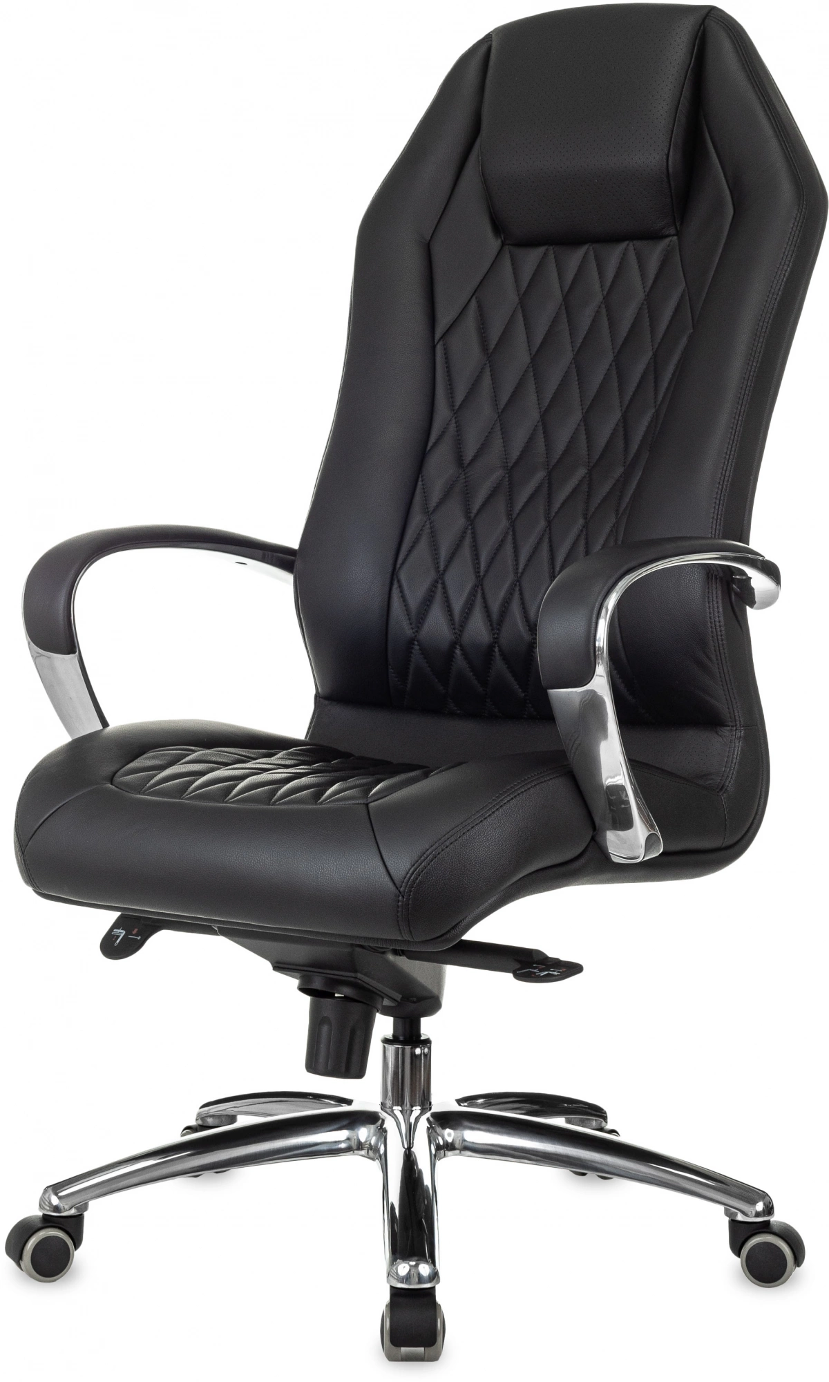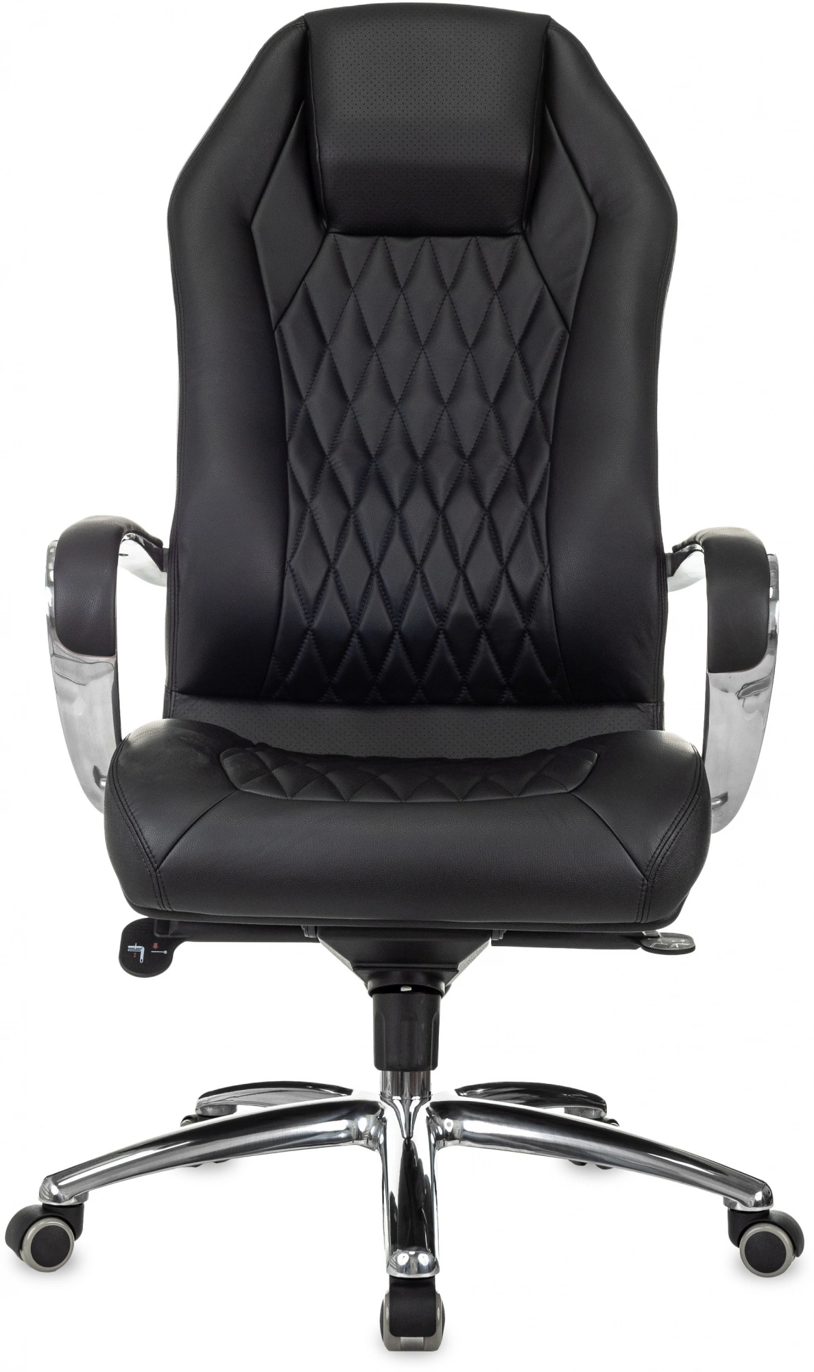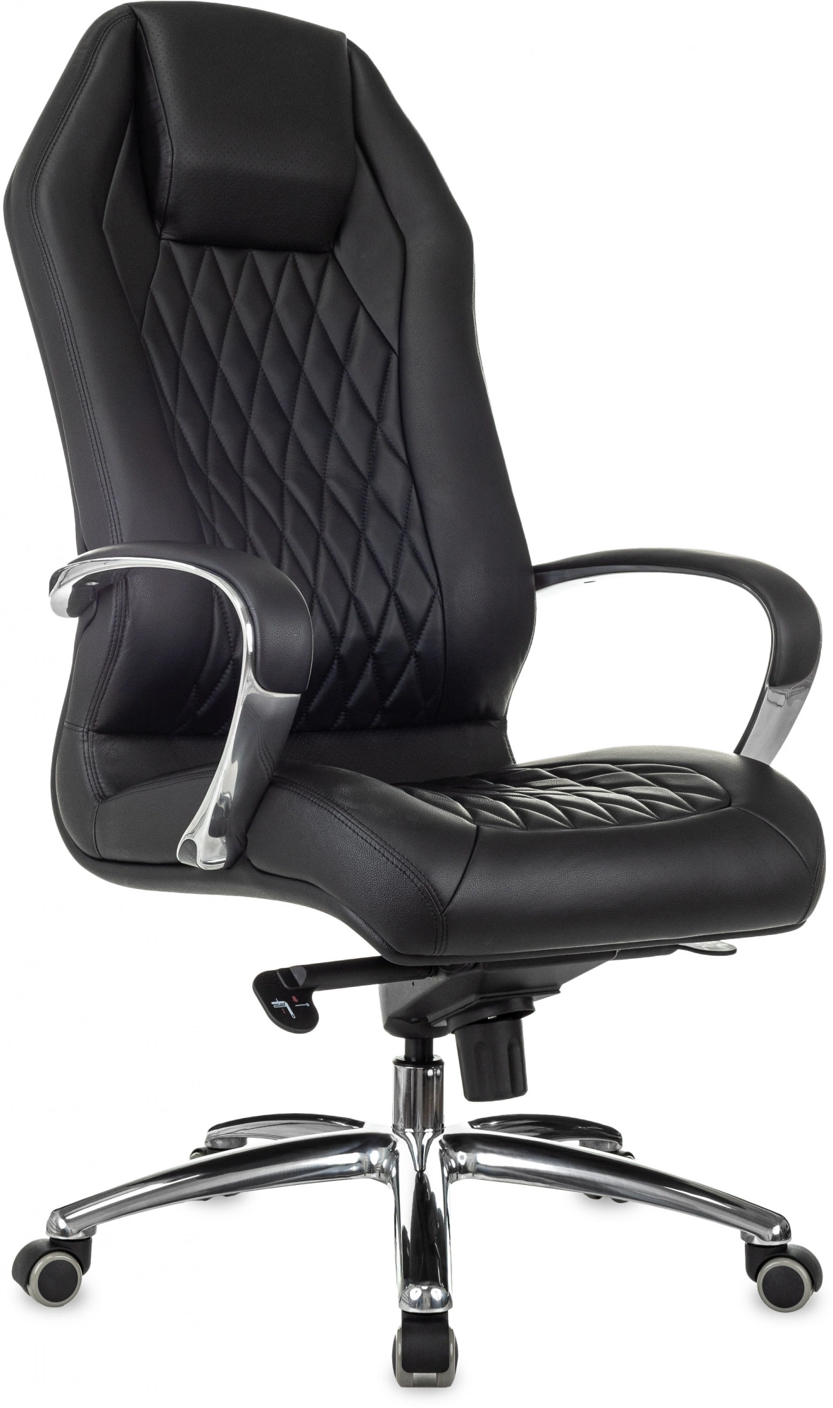 Кресло руководителя Бюрократ _Aura черный кожа крестов. алюминий _AURA/ BLACK