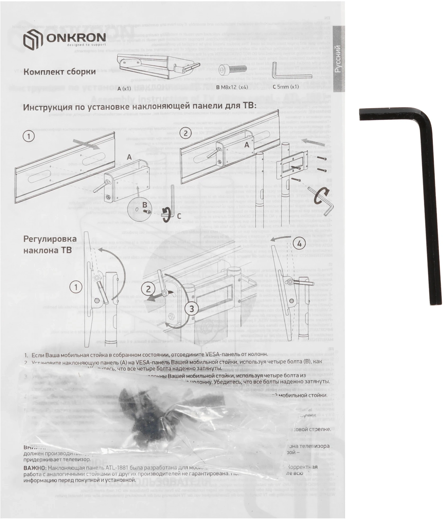 Адаптер наклона ONKRON ATL-1881 подходит для мобильных стоек TS1881 White, TS1881 Black, TS1892 Black. Данный адаптер позволяет с лёгкостью регулировать угол наклона вашего ТВ для обеспечения максимально комфортного просмотра.