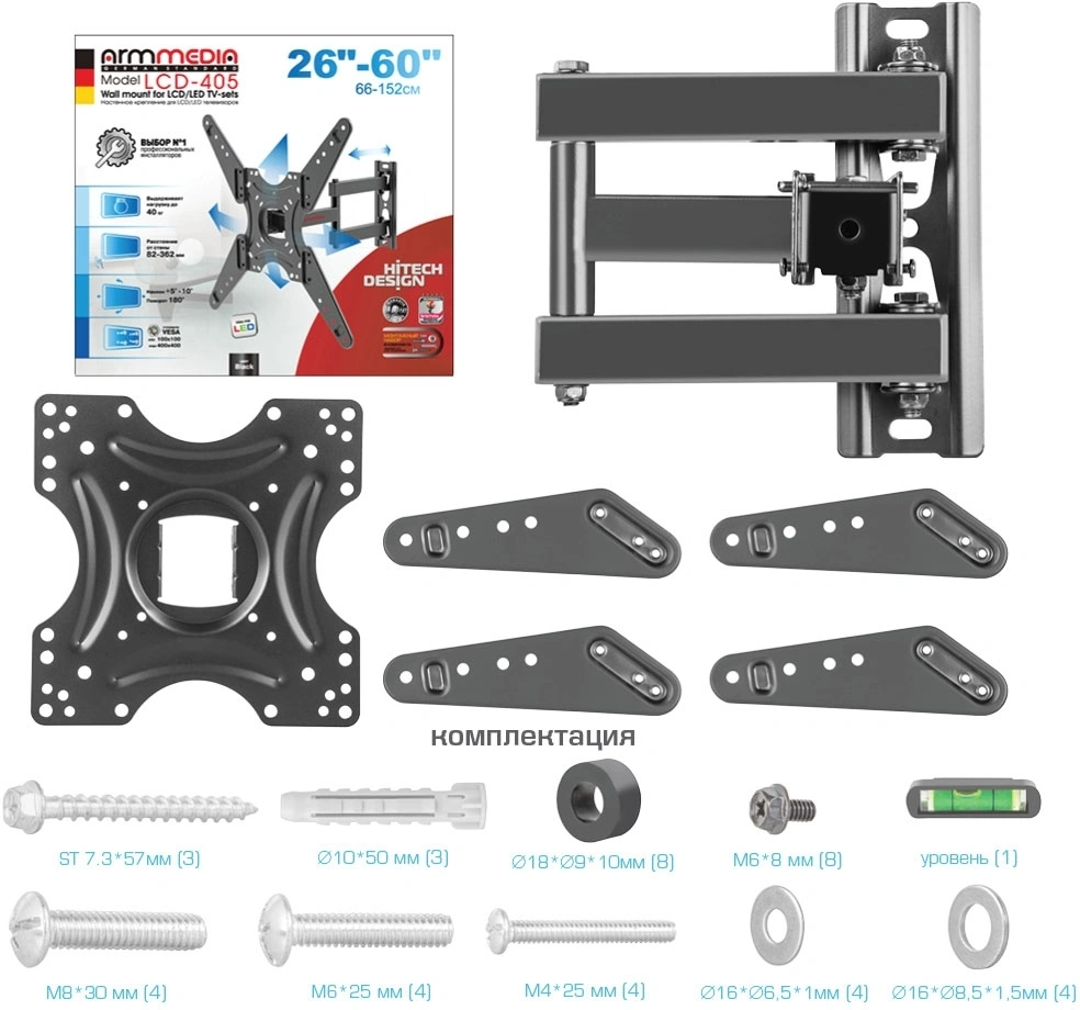 Кронштейн для телевизора Arm Media LCD-405 черный 26" -60" макс.40кг настенный поворотно-выдвижной и наклонный 90656