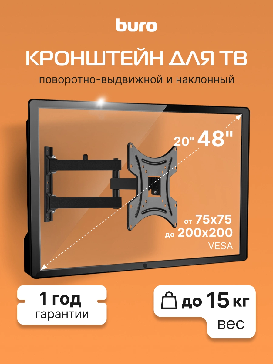 Кронштейн для телевизора Buro FL3S черный 20" -48" макс.15кг настенный поворотно-выдвижной и наклонный BM15A72TS3