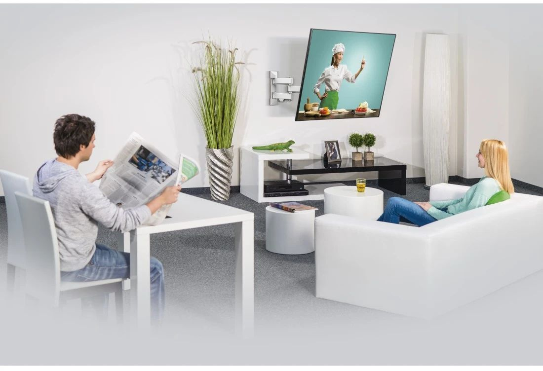 Диван, кровать, кухня или пол — благодаря этому настенному кронштейну вы можете перемещать телевизор с плоским экраном в любом положении. Он идеально впишется практически в любой дизайн дома, так что вы гарантированно получите удовольствие от просмотра телевизора.