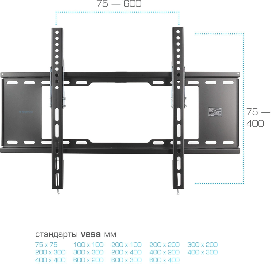 Кронштейн для телевизора Kromax IDEAL-102 черный 32" -90" макс.40кг настенный наклон 24037
