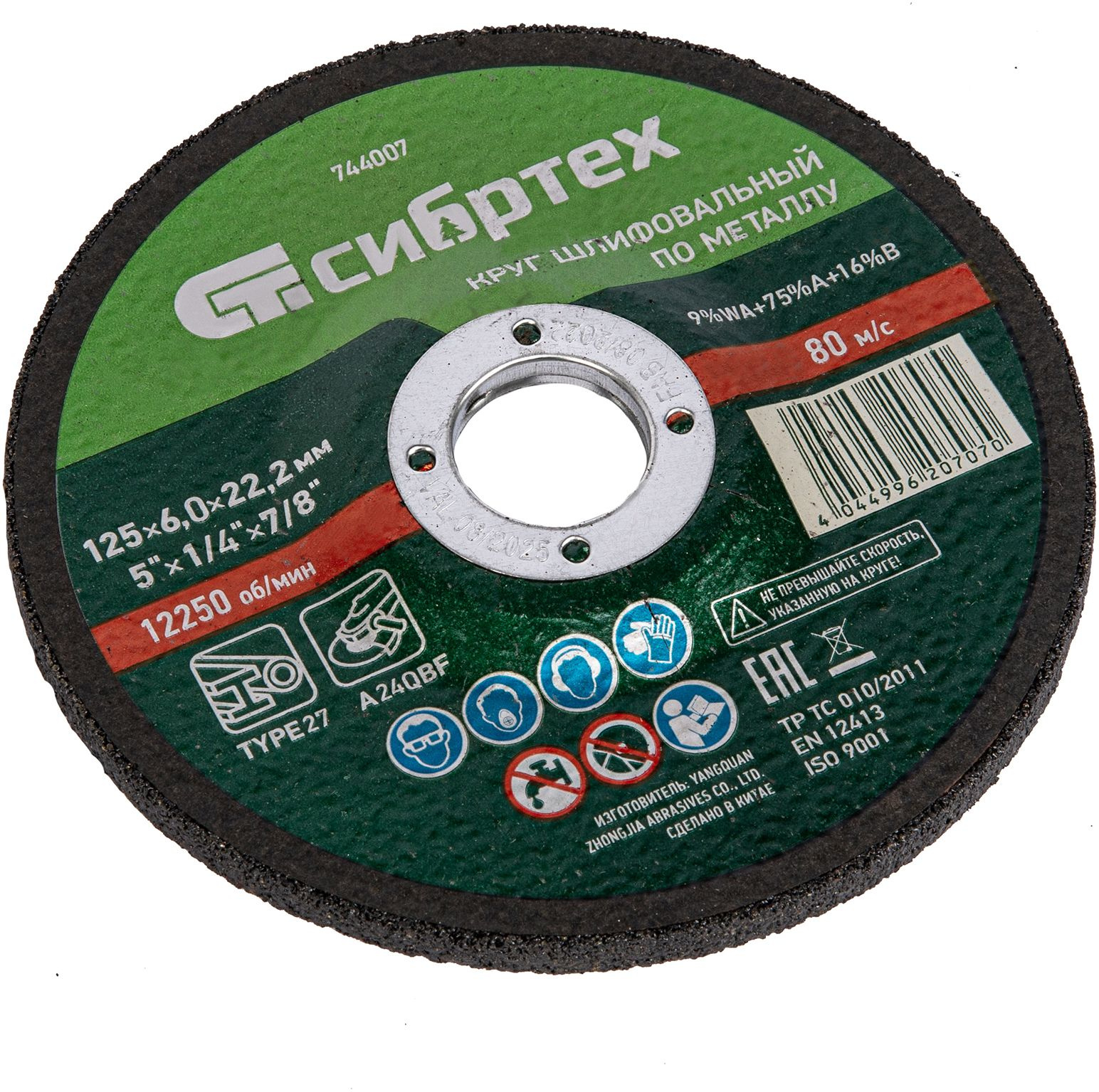 Круг шлиф. по мет. Сибртех 744007 d=125мм d (посад.) =22.2мм (угловые шлифмашины)